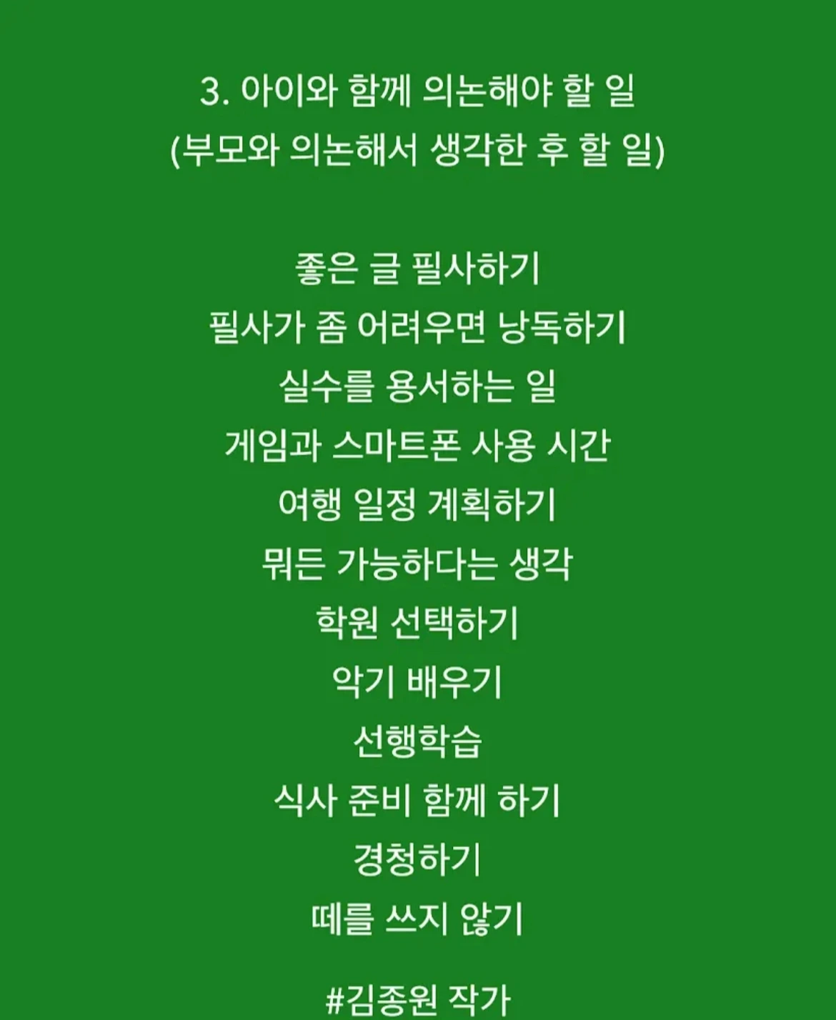 권을 줘야 하는 일 VS 아이와 함께 의논해야 할 일