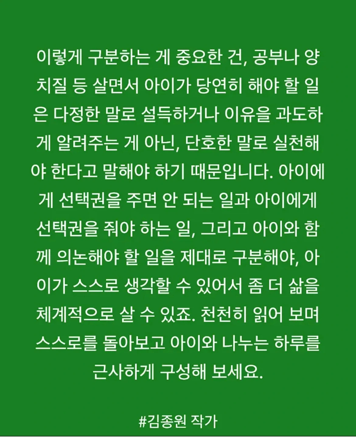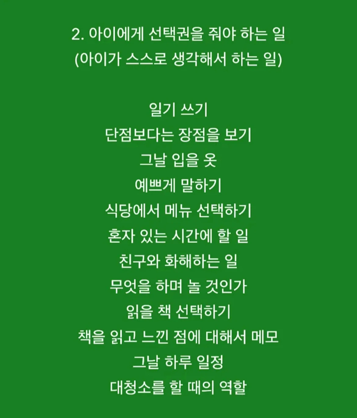 아이에게 선택권을 주면 안 되는 일 VS 아이에게 선택권을 줘야 하는 일 VS 아이와 함께 의논해야 할 일