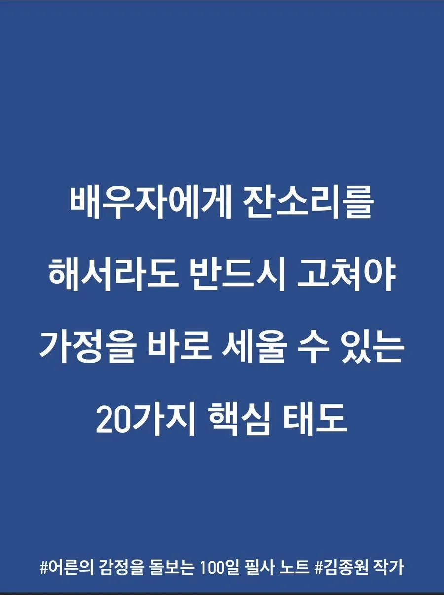 배우자에게 잔소리를 해서라도 반드시 고쳐야 가정을 바로 세울 수 있는 20가지 핵심 태도