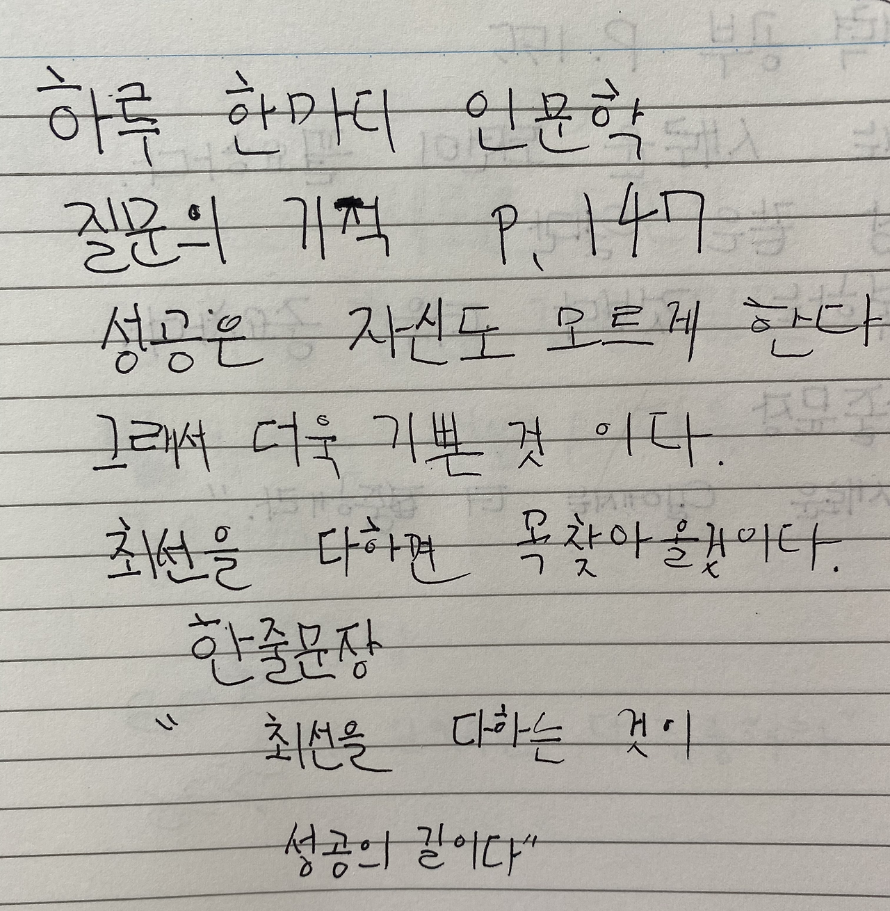 김종원 저 하루 한마디 인문학 질문의 기적 147P를 읽고