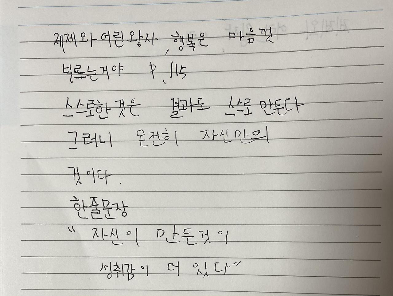 사람이 모두가 같을 수 없지만 다름을 이해하고 받아들일 수 있는 자세를 가질 수 있는 시간이 이렇게 ‘하루 10분’을 꾸준하게 쓰는 일상과 순간이 쌓여 만들어 갈 수 있는 게 살아갈 우리들의 희망이 되어 돌아오게 만드는 일이 된다.
