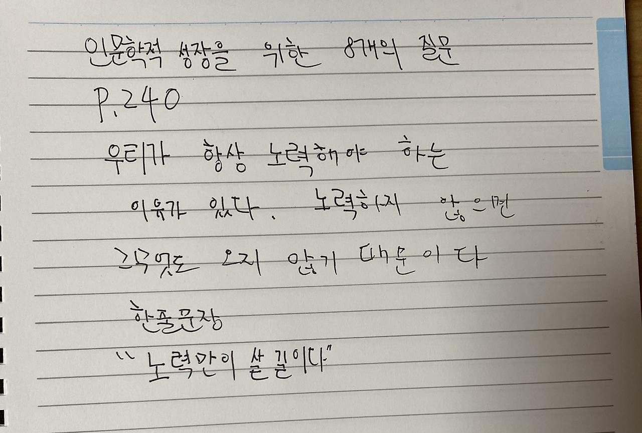 인문학적 성장을 위한 8개의 질문 240p를 읽고