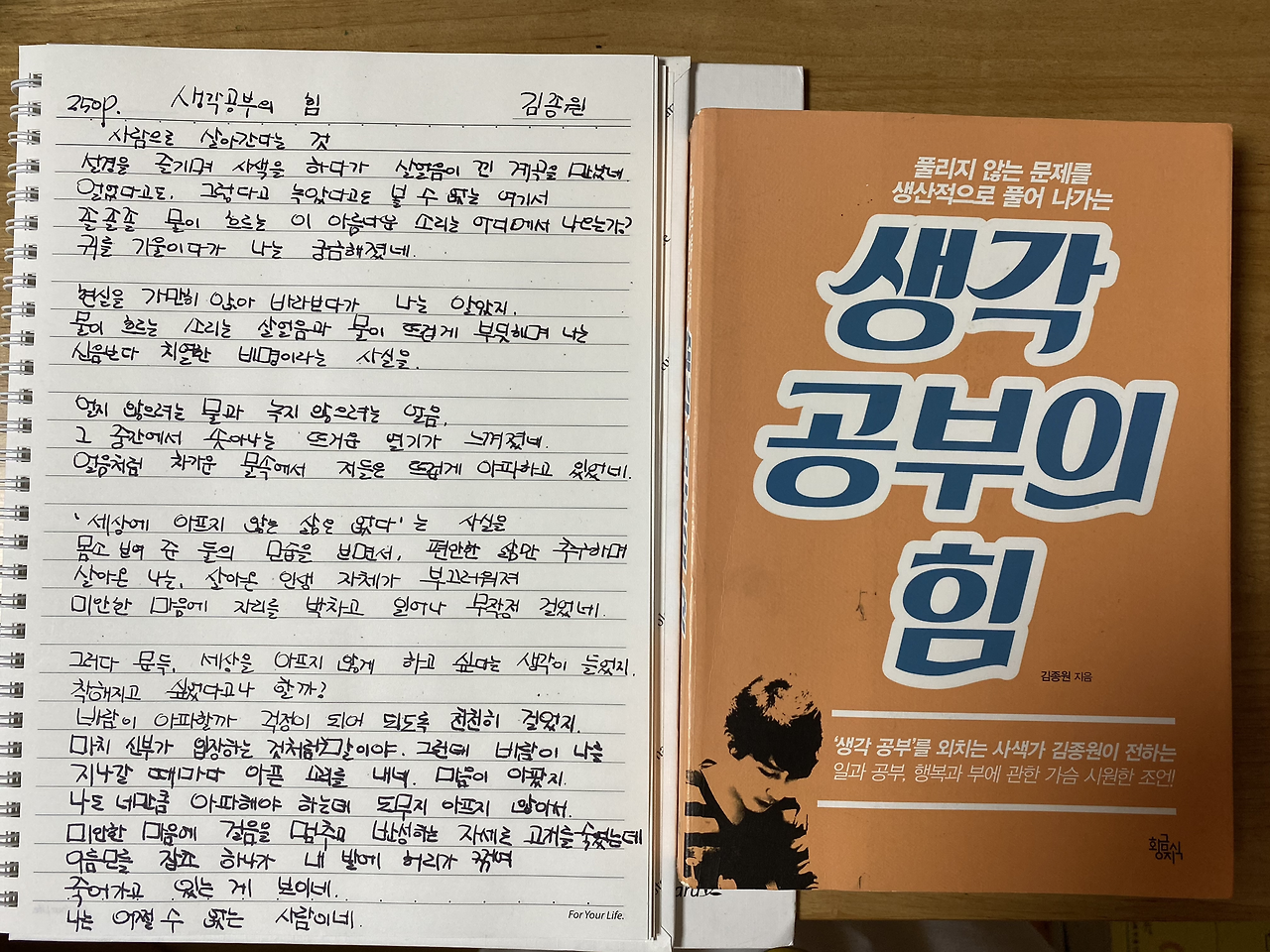내가 찾고 싶었던 유일한 힘은 세기의 지성 김종원 작가의 끝이 없는 너른 품 안에서 시작한다. 인간의 언어와 말과 생각은 모두 읽기와 쓰기 안에 존재한다. 고로, 혼자서 사색하는 시간의 합이 결국, 인간을 살리는 힘이며 못 된 것을 거르고 좋은 것을 찾는 방패이자 자신을 살리는 특별한 도구로 쓰일 수 있다.