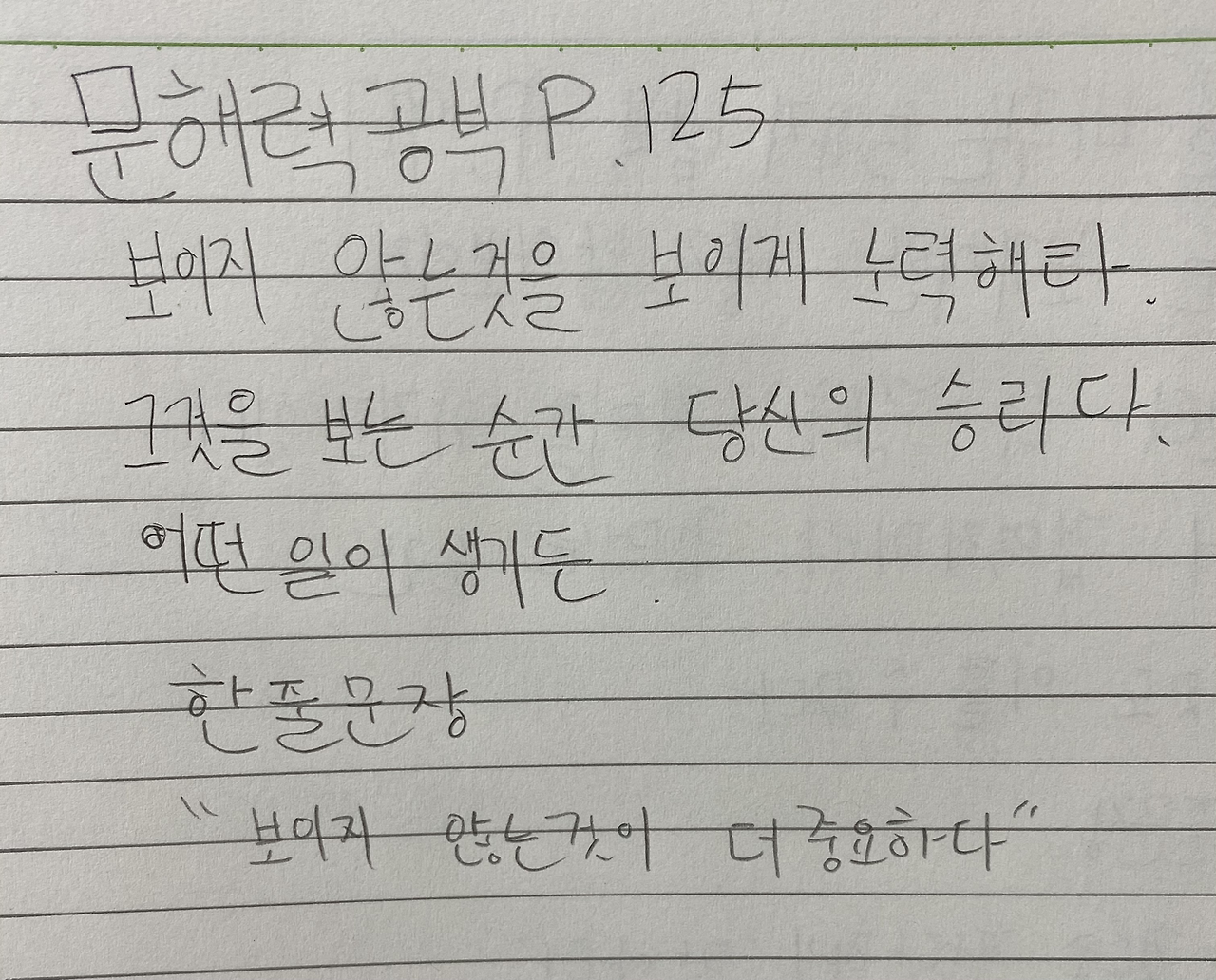 문해력 공부 125p를 읽고 중학생 아이의 생각