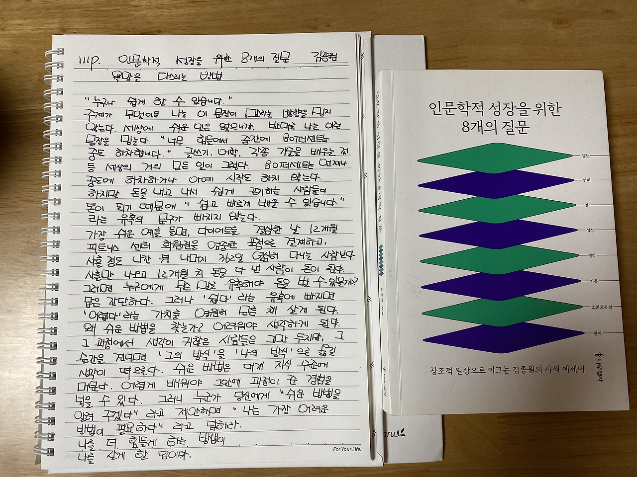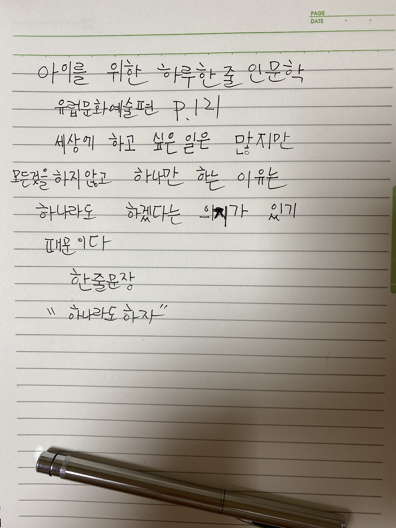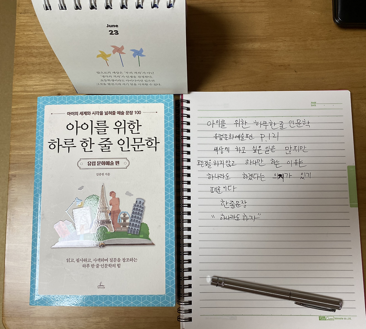 오늘 하루 몸이 잠시라도 쉴 시간이 없이 바쁘게 움직이다 집으로 돌아와 이번 주는 온라인 수업을 하는 아들이 해놓은 필사의 흔적을 보고 마음이 스르르 녹아내린다 같은 지성이 내린 근사한 별 길을 함께 걸어서 일까, 오늘 하루 중에서 바로 오늘을 잘 살게 되는 ‘의지’에 대해 사색의 시간을 보냈는데 아이도 나란히 그 생각 길을 걷고 있었다는 사실에 흐뭇한 엄마에게 안도하는 휴식을 주듯이 통하는 느낌이 이렇게 기쁘고 설렌다.
