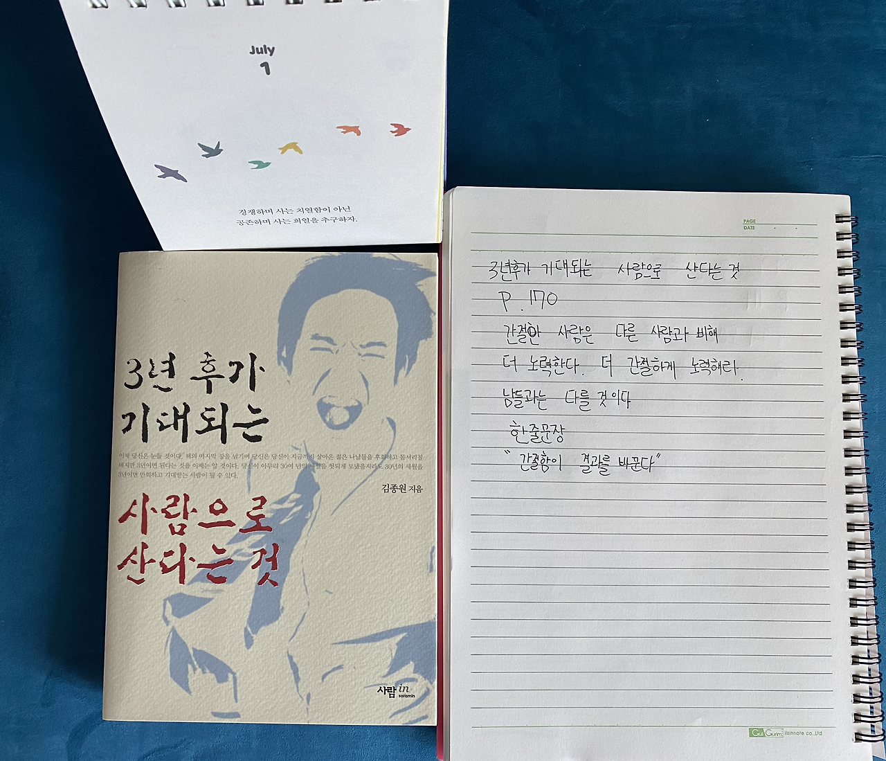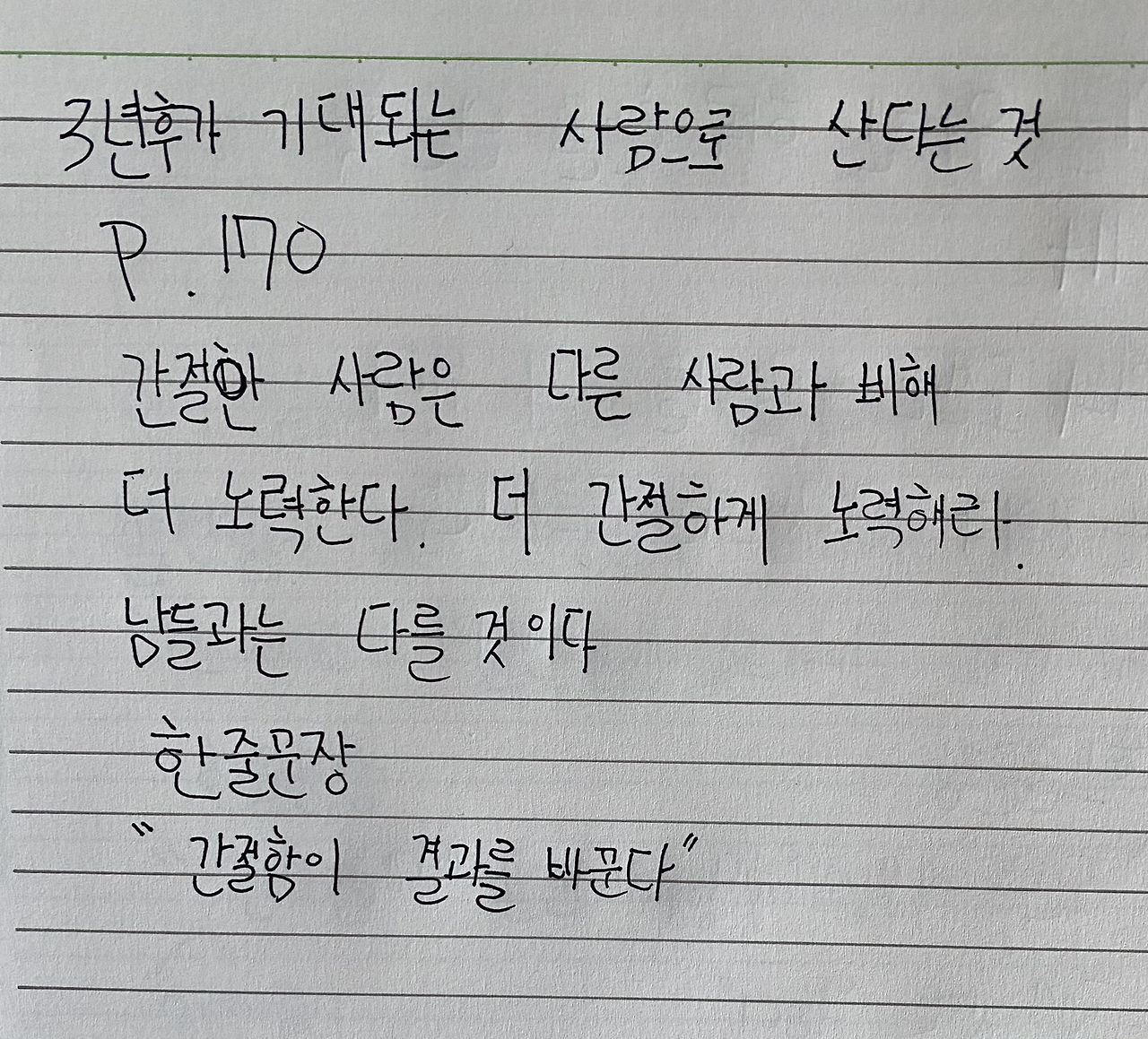 1. 김종원 작가님 저 3년 후가 기대되는 사람으로 산다는 것 170P를 읽고 중1 아이의 생각