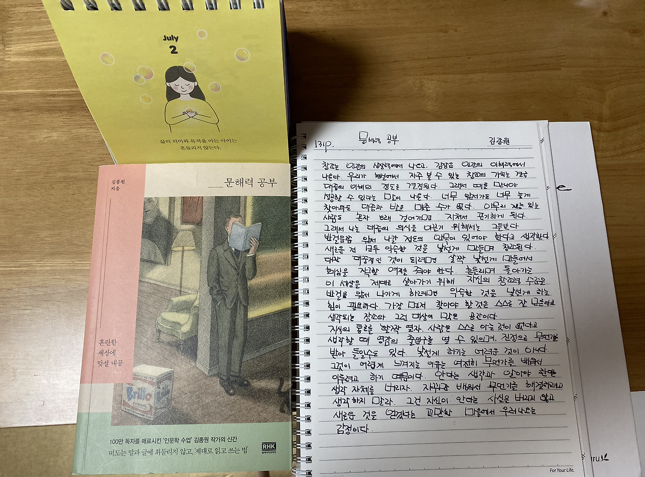 잘했다. 오늘의 날을 잘 쓸 수 있고 각자 선택한 것들을 벗 삼아 시계처럼 정해진 초침 사이를 모두가 걸을 수 있으니 그거면 충분하게 행복한 우리들의 모습이다. 지적인 갈망 속에 피어나는 향긋한 언어들은 영원토록 지지 않고 피어나는 우리들의 속삭임이 되어 줄 테니까.