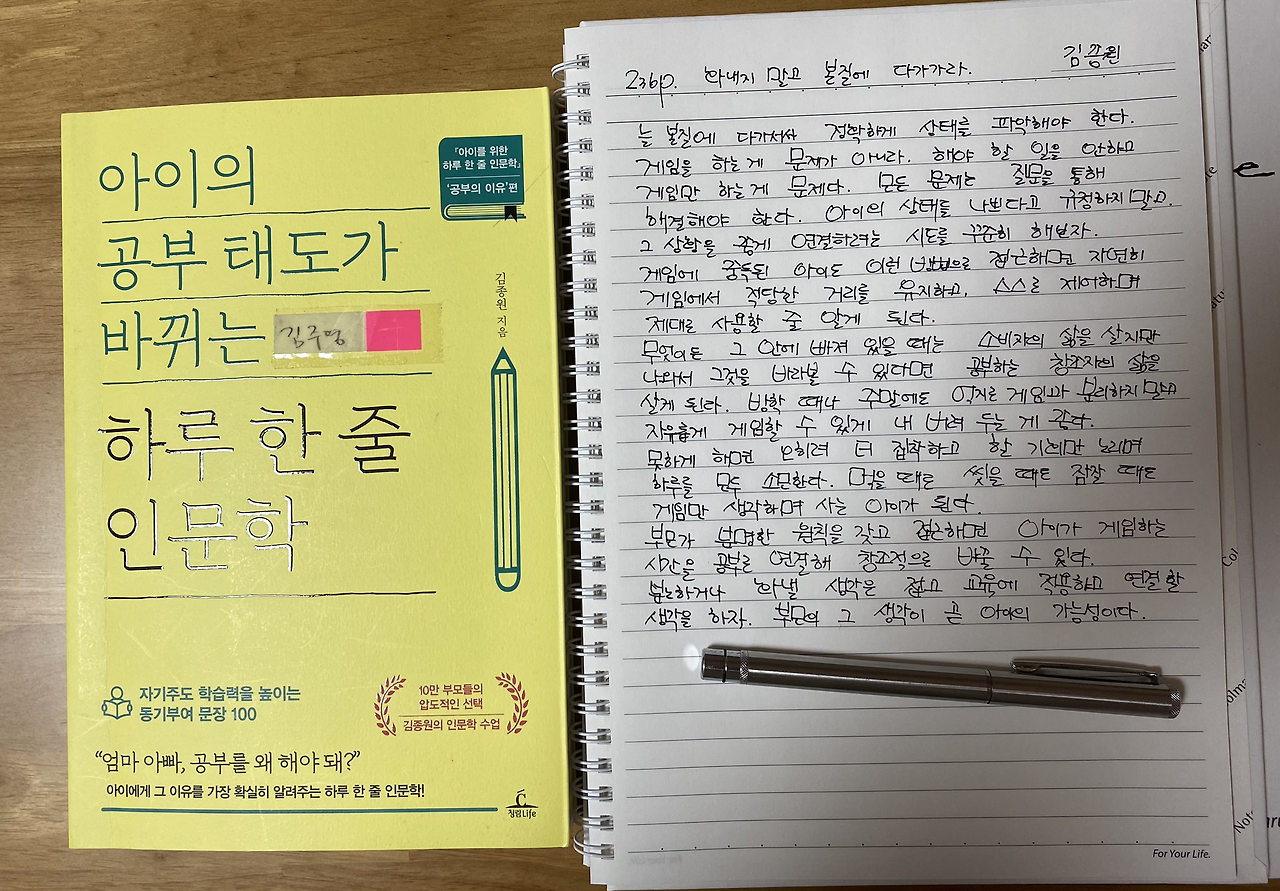 시험을 치르고 집에 돌아온 고3 누나와 함께 주거니 받거니 단체 통화를 하듯 즐거운 전화를 마치고 인문학 달력 동영상과 자신이 한 필사까지 준비해서 엄마의 카톡으로 전송하는 아이의 분주한 손길과 마음이 오후의 까치 새처럼 반가운 소식이며 아이의 마음을 내게 전하는 것 같아 많이 반가움을 멈출 수 없다.