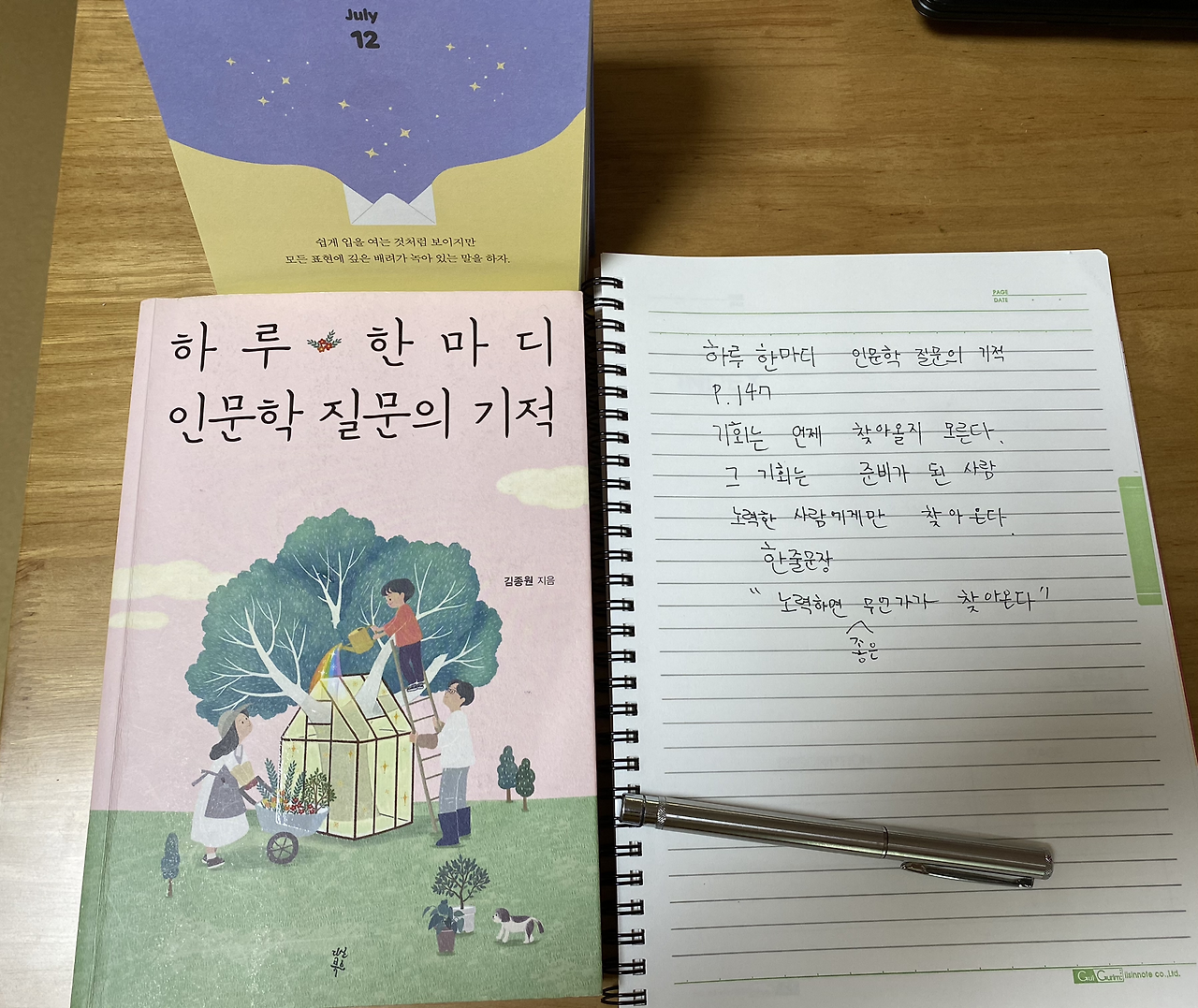 이런 생각이 스칠 때는 늘 내가 보낸 지난 시간들이 나에게 찾아온다. 내가 제대로 알지 못해 큰 아이에게서 빼앗아버린 아픈 사랑과 관심이라 우긴 자유가 아닌 시간들을 보냈거나 내가 향했던 어떤 무거운 마음의 무게를 바라보아야 한다. 어제의 나보다 오늘의 내가 더 성실하기를 바르기를 ‘매일 하루 10분 인문학 시간’을 보내며 찾고 싶은 사색이라는 것이 바로 관계에서 긍정이 피어나는 향기 있는 생각 들이며 단 한마디를 하더라도 의미 있거나 기품 있는 근사함으로 새롭게 태어나고 싶은 마음만이 간절해진다.