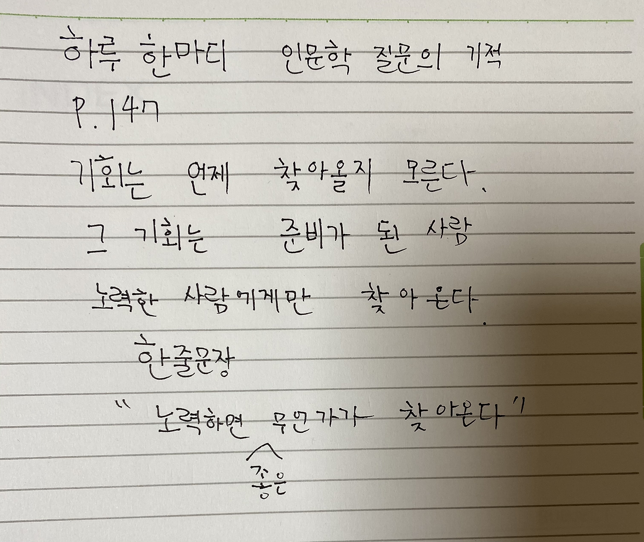 하루 한마디 인문학 질문의 기적 147p를 읽고
