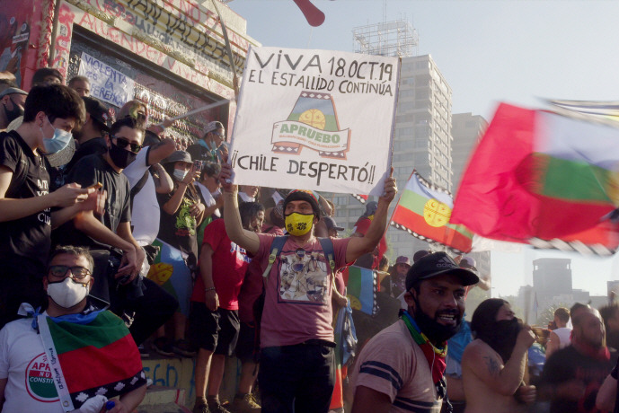 영화는 "구즈만의 첫 영화 <첫 해>의 푸티지로 시작한다. 살바도르 아옌데를 보며 환호하는 칠레 민중의 모습이 담겨 있다. 구즈만은 크리스 마르케가 그 영화를 마음에 들어 했으며, 프랑스에 배급하는 것에 도움을 주었음을 언급하며 영화를 시작한다. 오랜만에 칠레를 찾은 그가 마주한 것은 거리의 돌들이다. 최루탄과 고무탄, 살수차 등으로 무장한 경찰에 맞서기 위해 시위대가 부순 길바닥의 잔해들이다. 구즈만의 전작 <꿈의 안데스>에서 보았던 것과 같은 돌들이다. 그는 세 편의 전작(<빛을 향한 노스탤지어>, <자개 단추>, <꿈의 안데스>)를 통해 피노체트 군부정권 하에서 진행된 투쟁을 되짚어 보았다. <내가 꿈꾸는 나라>는 2019년 10월 18일 시작되어 현재도 진행중인 새로운 혁명에 관한 이야기다. 구즈만은 자신이 목격한 칠레의 두 번째 혁명에서 일종의 데자뷔를 느낀다. 길바닥에 돌들, 무장한 경찰들, 길거리에 배치된 군인들, 그리고 무수한 군중들. 이 데자뷔에서 구즈만은 1970년대외 2020년대 사이의 차이를 하나씩 찾아간다. 우선 이 영화의 모든 인터뷰이는 여성이다. 언어학자, 영화인, 대학생, 사진작가, 체스 기사, 음악가 등 다양한 직업군의 여성들은 이번 혁명의 의의를 각자의 관점에서 설명한다. 보수적인 칠레의 문화를 철폐하고자, 신자유주의와 가부장제와 여성, 사회적 소수자, 노동자, 농민, 원주민을 차별하고 배제하는 정치를 철폐하고자 이들은 거리로 나섰다. 백만이 넘는 인파가 몰린 광경이나 수많은 여성이 성폭력과 성차별에 반대하며 군무를 추는 광경은 엄청난 폭발력을 보여준다. 다만 이 폭발력은 피노체트 정권을 타파하고자 거리로 나섰던 이들이 동일한 목표로 모였던 것과는 다른 양상으로 전개된다. 구즈만이 이 영화에서 여성만을 인터뷰한 이유가 여기에 있을 것이다. 물론 이들의 목표는 하나의 이데올로기를 형성하지 않는다. 이번 혁명에 참여한 이들의 이데올로기는 "차별과 배제의 철폐"와 같은 모호한 것에 가깝다. 마침내 자신이 꿈꾸던 나라에 가까워진 칠레의 모습을 목격하는 구즈만의 내레이션과 시선은 그가 느꼈을 감격을 고스란히 전달한다. 물론 한 인터뷰이의 말처럼, 그것은 실패할 가능성을 품고 있다. 새로운 헌법 제정에 실패할 수도, 선거에서 극우파가 득세할 수도 있다. 하나로 조직되지 않은, 지도부도 이데올로기도 통일된 의제도 없는 투쟁은 어디로 향하게 될까? 영화를 보는 내내 절반의 성공을 거둔 2016년 이후의 한국을 떠올리게 된다. 구즈먼은 이번 영화의 제목을 "My Imaginary Country"라 지었다. 그가 꿈꾸는 나라는 완수된 과거의 것도, 완수될 것이라 예측하기도 어려운 지향점이다. 70년대의 '칠레 전투'를 지켜보았던 구즈먼은 여전히 새로운 칠레를 꿈꾸고 카메라에 희망을 담아내려 한다. 언제든 절망으로 바뀔 수 있는 희망일지라도, 구즈먼의 카메라는 희망의 모호한 실체를 찍는다. 영화의 엔드크레딧에는 <칠레 전투>에 나왔던 칠레 민중의 모습이 등장한다. 동일한 움직임을 보여주는 당시의 이미지는 영화 내내 그와 같은 움직임을 보여주던 2020년대 칠레 민중의 이미지와 겹쳐진다. 단지 이미지에 담긴 이들의 모습이 변화하였을 뿐이다. 구즈만이 꿈꾸는 나라는 도래할 수 있을까? 다가올 미래를 확신하여 말할 수는 없지만, 적어도 구즈만이 40년 간 품어온 절망이 희망으로 변화하는 순간을, 이 영화를 통해 엿볼 수 있다.