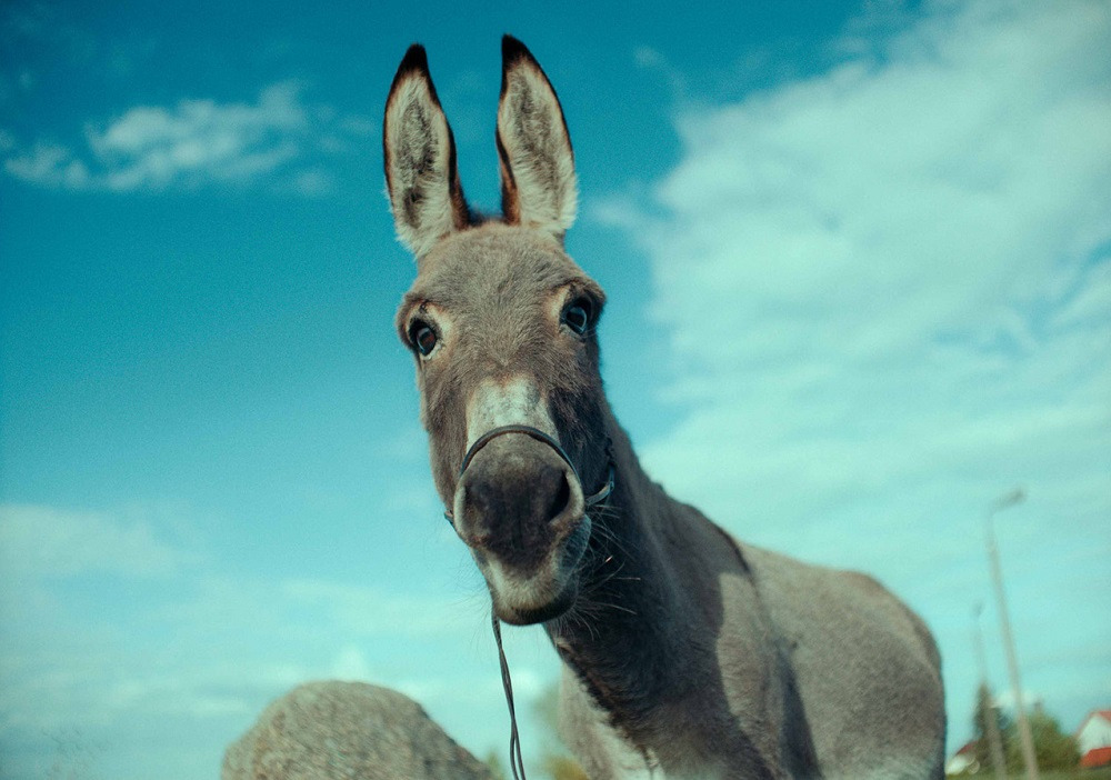 이오는 영화의 주인공인 당나귀의 이름이다. 서커스단에서 일하던 이오는 동물권 단체의 시위와 서커스단의 파산으로 인해 다른 곳으로 옮겨진다. 영화는 승마장, 농장, 동물보호소, 야생동물 불법거래단 등을 거치고, 시위대, 공무원, 소방관, 서커스단원, 다운증후군 환자들, 훌리건, 트럭운전수, 의문의 부자 등을 만나는 이오의 여정을 따라간다. 로베르 브레송의 <당나귀 발타자르>를 느슨하게 리메이크한 것만 같은 이 영화는 모든 인공적인 산물을 혐오하는 것만 같다. 그것은 불법동물거래소나 서커스단, 농장처럼 실체가 있는 장소일 수도, 시위대나 축구팀과 같은 집단일 수도, 법, 제도, 동물권 등의 관념일 수도 있다. 물론 동물권 앞에는 '인간 사고의 산물'이라는 것이 붙어야 겠지만. 영화 속에서 이오는 다양한 방식으로 대상화된다. 그것은 그가 말을 할 수 없는 비인간 동물이기 때문일 것이다. 의사표현을 할 수 없는, 하지만 다양한 방식으로 의사표현하고 있음을 감지할 수 있는 이오의 모습은 그것을 빗겨간다. 아니, 빗겨가려 한다. "빗겨가려 한다"라고 말한 이유는 결국 이오를 담아내는 것 또한 인공의 영역이기 때문이다. 핸드헬드, 클로즈업, 몸에 부착된 카메라 등 다양한 방식으로 이오의 여정을 쫓던 카메라는 종종 이오(혹은 주변의 인간들)을 완전히 벗어난다. 난데없이 등장한 뒤집힌 스키 장면이나 붉은 숲을 드론으로 보여주다 풍력발전기의 회전에 맞추어 회전하는 움직임, 혹은 댐에서 뿜어져 나오는 물줄기를 역재생으로 보여주는 것 등이다. 이러한 카메라의 움직임 혹은 이미지에 가한 조작은 카메라 자체의 인공성을 극대화한다. 과장된 붉은 조명과 음악이 동원된 서커스 장면에서 시작한 이 영화는 영화가 근본적으로 지닌 인공성을 강조하고 그것을 벗어날 수 없음을 스스로 시인한다. 다시 말해, <EO>는 어떤 식으로도 이오를 대상화할 수밖에 없음을 자백하는 영화다. 영화의 마지막에서 이오는 공장식 축산농가의 소떼와 함께 어디론가 향한다. <옥자>나 공장식 축산 관련 다큐멘터리에서 으레 보았던 동물의 행렬 속에 이오가 뒤섞인 채 영화가 끝난다. 이는 영화라는 인공은 언제나 (그런 것이 존재한다면) 인공이 아닌 것에 배패할 수밖에 없다는 노장의 자기고백이다.