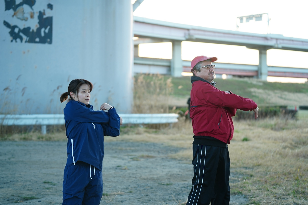 선천적으로 귀가 들리지 않는 여성 복서의 실화를 각색한 작품이다. 주인공 케이코는 청인인 동생과 함께 살며, 낮에는 호텔에서 일하고 밤에는 복싱 훈련에 매진하는 삶을 살고 있다. 귀가 들리지 않기 때문에 훈련은 물론 경기에도 많은 어려움을 겪지만, 케이코와 복싱장의 트레이너는 훈련과 경기 모두를 훌륭하게 해낸다. 하지만 코로나19 팬데믹으로 인해 복싱장이 운영의 어려움을 겪고, 엎친 데 덮친 격으로 체육관 회장의 건강도 악화된다. 그러한 상황 속에서 케이코는 계속 복싱을 할 것인지 고민하게 된다. 2020년 12월부터 2021년까지의 시간대를 담고 있는 이 영화는 얼핏 익숙한 휴먼 감동 드라마처럼 다가온다. 이를테면 "장애를 극복하고 성공한 운동선수의 이야기" 같은 것 말이다. 하지만 미야케 쇼가 집중하는 것은 신파적 감동코드라기보단, 케이코와 체육관의 사람들이 보내는 시간 자체를 담아내는 것이다. 케이코가 트레이너와 미트 훈련을 하는 영화 초반부의 장면은 이를 정확하게 보여준다. 듣지 못하는 케이코의 속도에 함께하는 이들의 시간, 경쾌한 리듬으로 울리는 미트 소리 등은 이 영화가 지향하는 바를 정확하게 보여준다. 영화 속 첫 경기가 끝난 후 회장은 한 기자와의 인터뷰에서 케이코의 장점을 묻는 질문에 이렇게 대답한다. "재능은 없습니다. 리치도 짧고, 느리고. 하지만 솔직하고 정직합니다." 이 말은 케이코를 설명하는 것이기도 하지만, 회장이 자신과 체육관 트레이너들에게 하는 말이기도 하다. 이들의 장점, 혹은 재능은 솔직함과 정직함이다. 케이코와 함께 훈련하고 경기에 나가는 그들의 활동에서 다른 것은 없다. 어쩌면 케이코와 소통하는 그들의 모습은 극단적인 효율을 추구하는 것일지도 모르겠다. 선수를 위해 할 수 있는 것을 하는, 복싱만화 같은 것에서 보았던 그러한 인물상 말이다. 데뷔작 <플레이 백>부터 최근작 <너의 새는 노래할 수 있어>까지 미야케 쇼가 그려온 인물들은 꾸준히 그래왔던 것 같다. 자신이 다른 사람과 보내는 시간에 솔직하고 정직한 인물들. 때문에 미야케 쇼의 영화들은, 이번 영화에 대한 하마구치 류스케의 코멘트 "흘러가는 시간을 부드럽게 필름에 정착시킨 걸작"에 걸맞는 것을 보여준다. <너의 눈을 들여다보면>은 그것을 가장 훌륭히 해냈다.