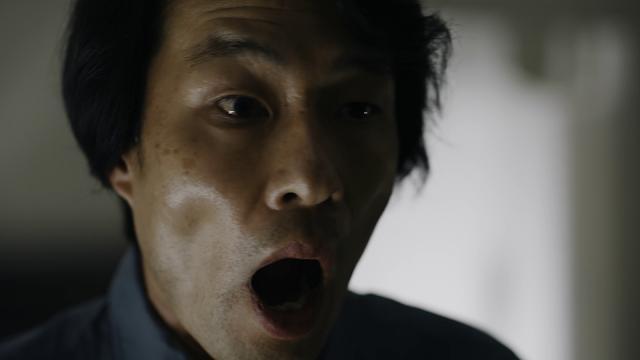 마츠오카의 집은 그 세계를 이미 드러낸다. 그의 집안 분위기가 극도로 가부장적이라는 점은 일단 차치하더라도, 집안 사람들의 움직임은 이미 이상하지 않은가? 동아리 이야기를 하다가 갑자기 웃는 아들이나 식사 중 갑자기 캔을 재활용쓰레기로 버리러 나가는 아내는, 얼핏 일상적으로 벌어질 수 있는 행동이라 하더라도 다소 어긋난 타이밍에 벌어진다. (그 집에 무수한 캔 쓰레기가 있다는 것도 이상하다. 아내 역을 맡은 배우가 3인 가정의 기묘한 식사 장면으로 시작하는 영화 <이사>의 주인공 타바타 토모코라는 점도) 세 가족 각자의 리액션은 뒤늦게 찾아오거나, 서둘러 벌어지는 것처럼 느껴진다. 두 번째 면접에서 레스토랑 오너와 마츠오카의 동상이몽과 같은, 같은 평면 위에서 살아가지만 근본적인 어긋남을 지닌 사람들. 그러한 세계에서 누군가의 손에 칼이 쥐어졌을 때 폭력이 발생하는 것은 당연한 일이다. 슬래셔 영화에 살인마가 등장하고 갱스터 영화에서 총이 격발되는 것처럼.