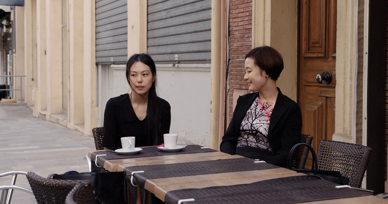 홍상수의 21번째 장편영화인 <그 후> 보다 늦게 20번째 장편영화가 국내에 도착했다. 오늘(4월 18)일 언론시사회 및 영화비평독립잡지 필로(FILO)의 창간 기념 상영회를 통해 국내에 첫 상영된 <클레어의 카메라>는 2011년 <다른나라에서> 이후 이자벨 위페르가 다시 한번 홍상수와 함께 작업하는 것으로 화제가 되기도 했다. 그들의 재회가 가능했던 것은 영화가 2016년 칸 국제영화제 기간에 칸을 배경으로 촬영되었기 때문이기도 하다. 홍상수와 22번째 작품인 <풀잎들>까지 내리 5작품을 함께하는 중인 김민희는 <아가씨>로, 이자벨 위페르는 폴 버호벤의 <엘르>로 각각 칸을 찾았기 때문이다. 영화 속에서 직접 칸 국제영화제를 언급하지는 않지만, 영화 내내 영화제가 언급되고 칸을 찾은 여러 영화계 종사자들이 등장하기에 관객들은 어렵지 않게 영화가 칸 영화제 기간의 칸이라는 공간을 배경으로 삼았음을 알 수 있다.