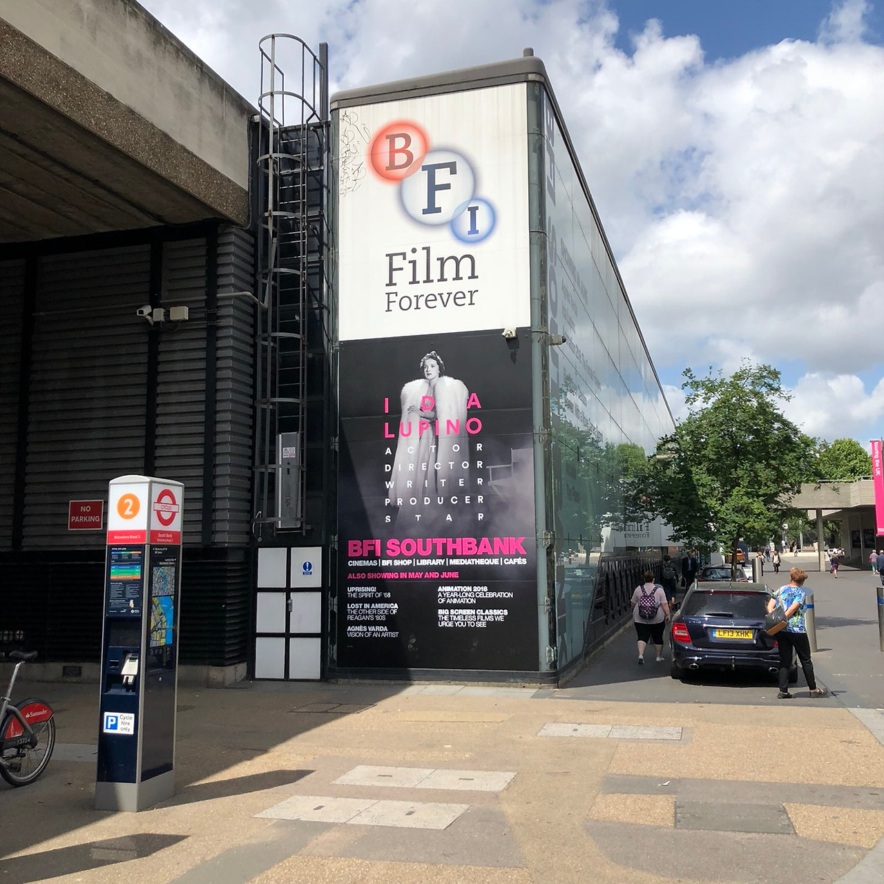 BFI 사우스뱅크에 도착하니 익숙한 로고가 눈에 띄었다. BFI가 제작하거나 제작지원을 한 영화들에는 BFI의 로고가 삽입되는데, 건물 입구에 붙은 저 로고와 동일한 것이다. 밑에는 7월에 진행될 배우 겸 감독 아이다 루피노 회고전을 알리는 홍보 포스터가 붙어 있었다. 극장에 들어서 먼저 챙긴 것은 이번 달의 프로그램이 담긴 프로그램 팸플릿이었다. 팜플릿이라기엔 두께나 구성이 웬만한 영화제 프로그램 북 뺨치는 수준이다. 상영작과 상영예정작에 대한 정보와 짤막한 리뷰가 들어 있고, 한 달 분량의 상영 캘린더 또한 수록되어 있다. 내가 방문했던 날(6월 14일)에는 서울국제여성영화제에서도 상영된 애니메이션 <브래드위너>(2017), 현재 진행 중인 아녜스 바르다 기획전의 일환으로 상영된 <5시부터 7시까지의 클레오>(1962), 루크레시아 마르텔의 신작 <자마>(2017) 등이 상영 중이었다.