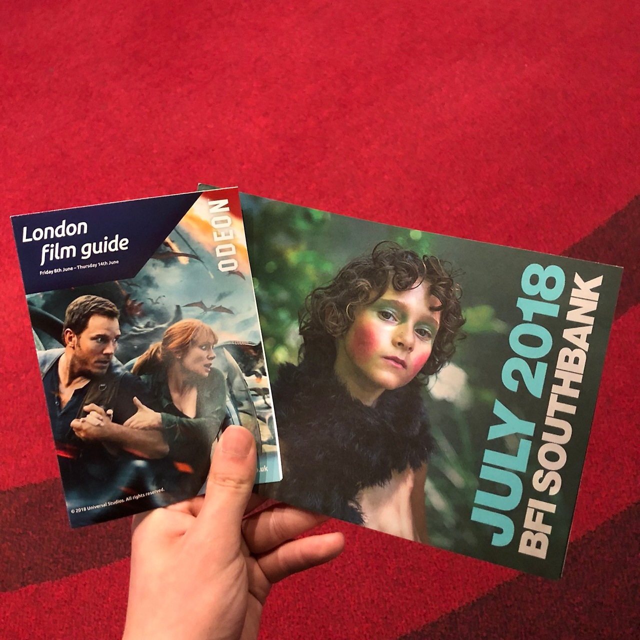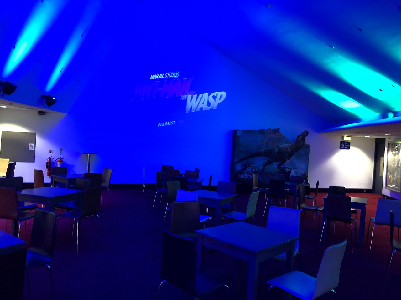 극장을 방문했을 때 상영작은 <쥬라기 월드: 폴른 킹덤>(2018) 단 한 편이었다. 아무래도 <한 솔로: 스타워즈 스토리>가 개봉한 지 한 달 좀 안 되는 시간이 흐른 시점이라 한 편만 상영 중이었던 것 같다. 이미 한국에서 CGV 왕십리 IMAX로 관람한 영화지만, 기왕 여기까지 온 거 해외의 IMAX도 경험해보면 좋겠다는 마음으로 표를 구매했다. 티켓은 국내 멀티플렉스들처럼 영수증이었다. (사진 속 다른 티켓은 먼저 발권한 BFI 사우스뱅크의 티켓이다) 가격은 학생요금(유럽 대부분 국가에서 만 25세까지 학생요금이 인정된다)으로 구매하여 15.50파운드, 성인의 경우 19.50파운드였다. 3D이기에 2파운드가 추가된 가격이다. BFI의 이름을 붙인 극장이지만, 극장 운영 자체는 영국 내 멀티플렉스 프랜차이즈인 Odeon이 맡고 있는 것 같았다. 실제로 BFI 홈페이지에서 예매 페이지로 넘어가면 Odeon의 홈페이지로 연결되고, 극장에 있는 무인판매기 역시 Odeon 프랜차이즈의 것이었다. 런던에서 시간이 남았다면 Odeon의 다른 지점도 들렀을 텐데 아쉽기만 하다. 상영시간이 되면 로비 한쪽에 위치한 계단을 통해 검표 후 상영관으로 입장할 수 있다. 상영관 입구 앞에는 팝콘과 음료 등의 간식거리를 판매하는 매점과 화장실, 앉아서 대기할 수 있는 의자와 테이블이 놓여있다. 공간 한쪽의 흰 벽에서는 곧 개봉할 IMAX 상영작 <앤트맨과 와스프>(2018)의 예고편이 상영되고 있었다.