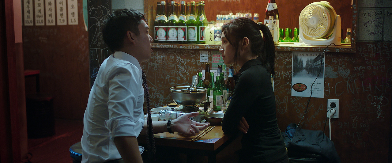 95분의 짧은 러닝타임 동안 세 차례 등장하는 자영의 섹스는 언뜻 후자를 부정하는 것 같다. 전애인과의 마지막 섹스에서 상의를 입고 있던 자영이 달리기 동호회의 동생과 나누는 섹스에선 전라상태라는 점은 운동을 통해 이상적이고 아름다운 신체에 가까워진 자영의 몸을 보여주려는 것 같기 때문이다. 한가람 감독은 두 섹스 장면을 조금 다르게 담아낸다. 첫 번째 섹스에서 남성인 자영의 애인은 자영의 몸을 만진다. 두 번째 섹스에선 자영이 남성인 동호회 동생의 몸을 만진다. 자영은 대상에서 대상화하는 사람으로 변모한다. 학습의 풍경에서 벗어난 초점 없는 눈이 멍하니 천장을 바라보던 첫 번째 섹스와는 다르게 두 번째 섹스에서는 적극적으로 상대의 몸을 관찰한다. 몸을 관찰하는 자영의 눈은 동생 아영이나 현주의 몸을 바라보던 시선의 연장이다. 이 시선에는 기묘하게도 성적인 뉘앙스가 제거되어 있다. 자영이 원하는 신체는 아름다운 성적 대상이라기 보단 규율에서 벗어날 수 있을 법한 신체다. 출판사에서 일하며 소설을 쓰는 현주의 달리는 신체는 자영의 시선에서 자유로운 것으로 보인다. 그리고 세 번째, 가장 논란이 된 정 부장(장준휘)과의 섹스는 일종의 재확인이다.