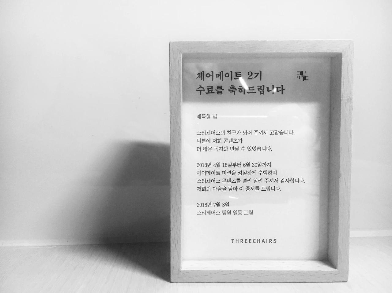 그랬던 제가 갤러리를 방문했습니다. '스리체어스'에서 진행한 '체어메이트 2기' 활동이 계기가 되었습니다.