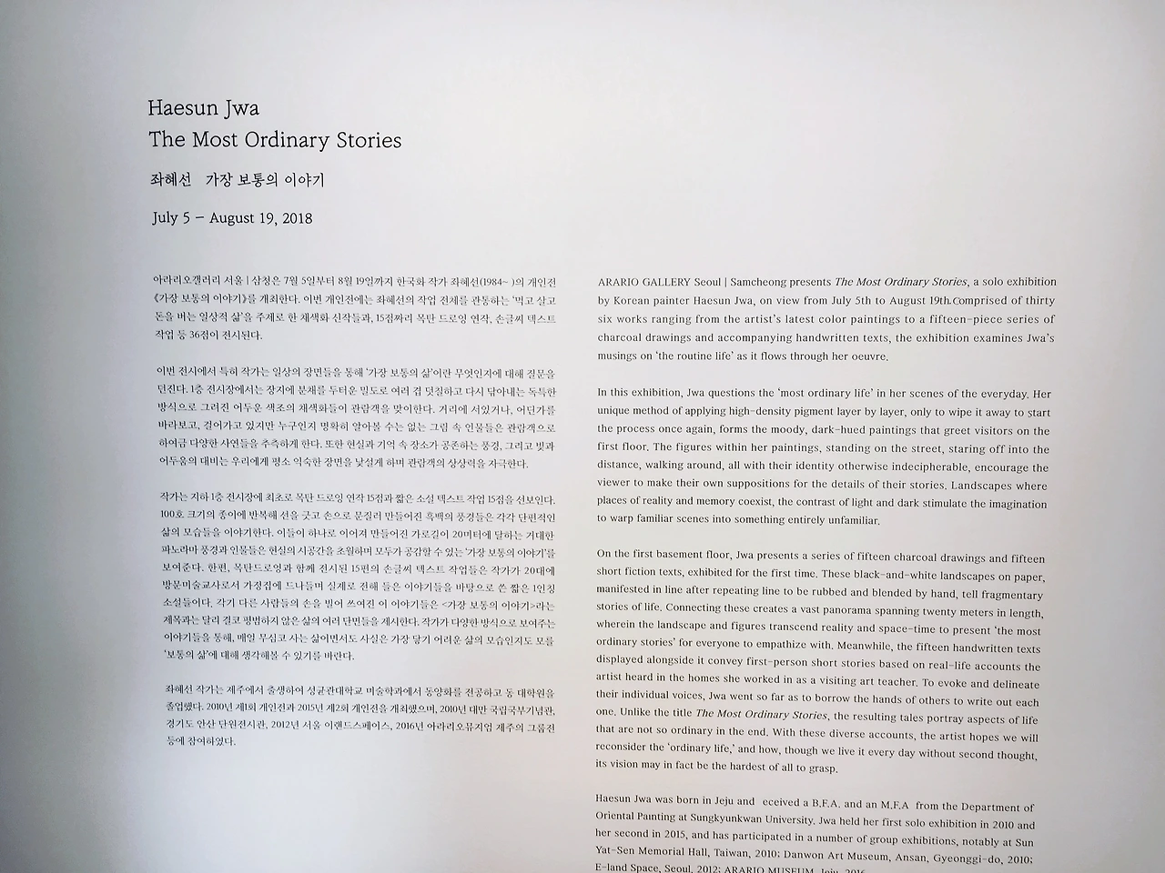 학고재도 아라리오갤러리와 마찬가지로 입구 오른쪽 벽에 전시에 관한 설명이 적혀있었습니다. 문제는 설명을 읽어도 무슨 말인지 이해하기 힘들었다는 점입니다.