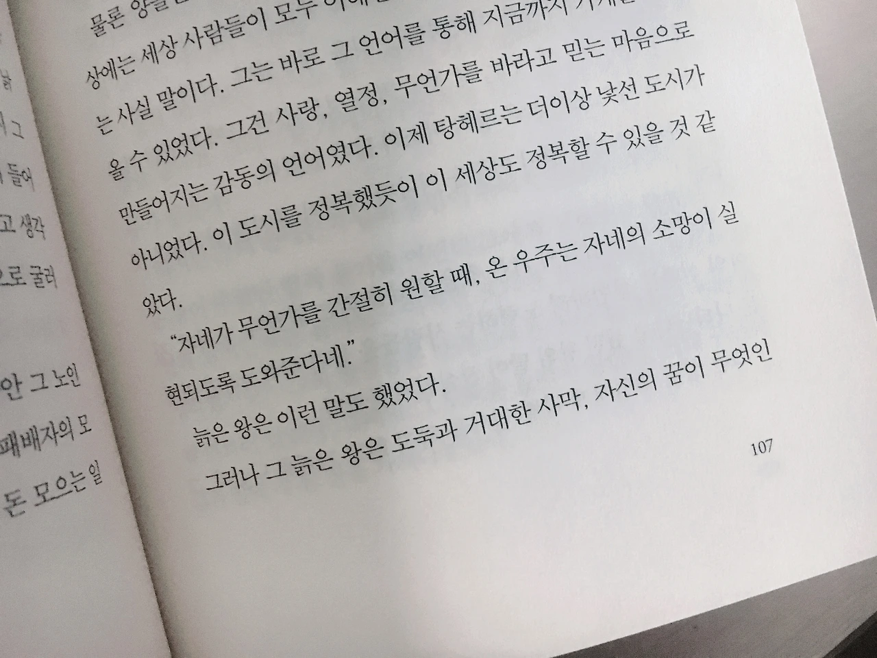 <연금술사>를 처음 만난 건 중학생 때로 기억합니다. <연금술사>는 첫 단어부터 마지막 마침표까지 저를 붙들고 놓지 않았습니다.