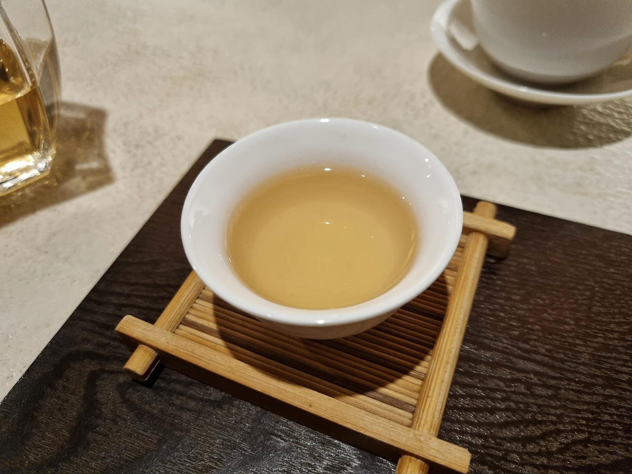 이날은 백차를 권해줬다. 老백호은침. 2013년생 복건성 출신. 다구를 준비한 마스터가 앞에 와 뜨거운 물로 잠들고 있던 차를 서서히 깨운다. 한 주전자의 차를 즐기고 나면 다시 뜨거운 물을 채워준다. 점점 부드러워지는 맛. 고약한 술냄새가 빠지고 온몸에서 은은한 차향이 날 때까지 차를 마시고 또 마시면 된다.