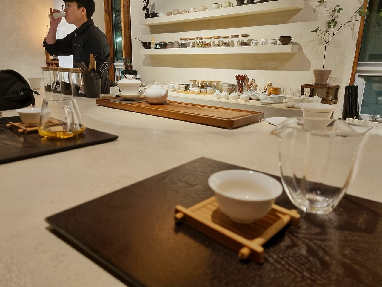 차에 관한 애정이라면 남부러울 것이 없는 두 남자가 있다. 현대적으로 재해석된 공간에서 전통차를 다룬다. 바에 앉으면 메뉴가 도착한다. 잘 모르겠다면 말을 건면 된다. 차를 좀 추천해 주시겠어요? 차분하고 상냥한 목소리로 큐레이션을 받을 수 있다. 식사는 했는지, 평소에 좋아하는 차가 있는지 이야기를 나누면서 차 맛을 좁혀나간다. 차에 대한 애정이 조금이라도 보여진다면 점장의 반짝이는 눈빛을 만날 수 있을 것이다. 당신은 이미 단골이 됐다.