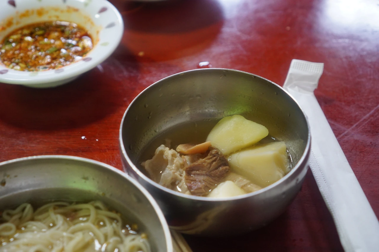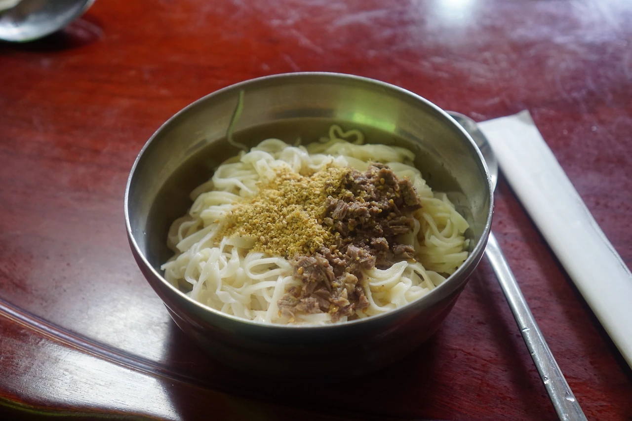 동암종택의 건진국수. 육수를 자작하게 부워먹는다
