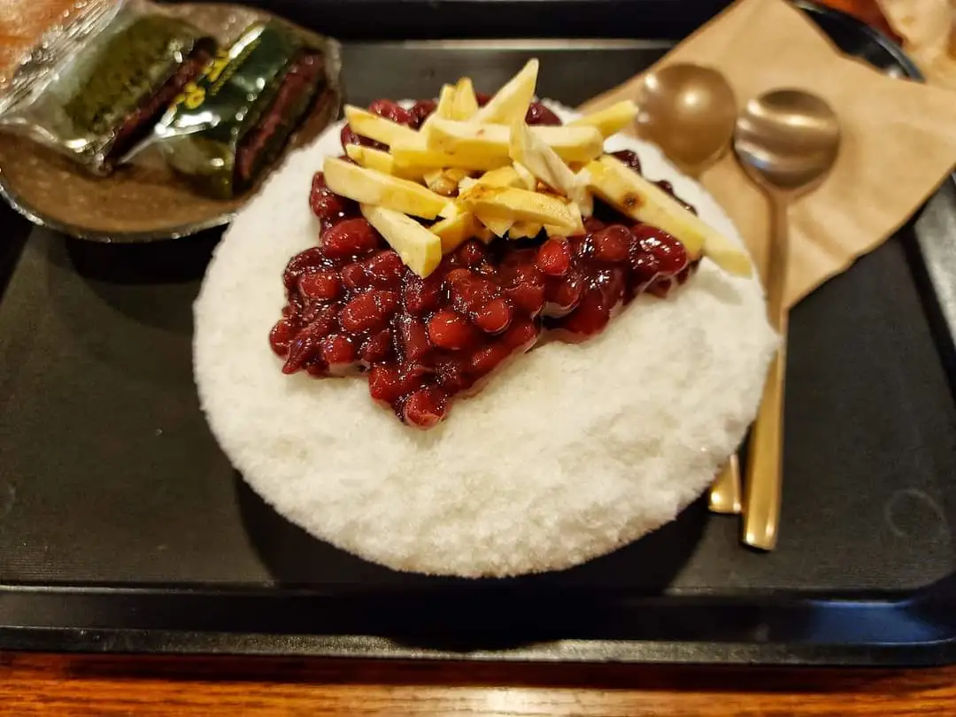 팥빙수는 전골 같은 음식이다. 하나를 시켜놓고 둘이 나눠먹는다. 이곳에선 올려져 있던 팥을 다 먹어도 슬퍼하지 않아도 된다. 하얀 눈꽃을 걷어내면 차갑게 재워져 있는 팥소 한 무더기를 발견하게 되기 때문이다.