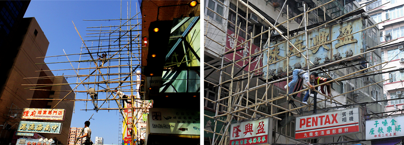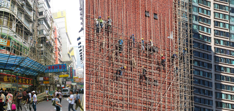 빼곡한 콘크리트 빌딩숲을 걷다 보면 건물 외벽에 긴 장대같은 대나무들을 엮어서 세운 구조물을 자주 볼 수 있다. 높게 세운 대나무들이 삐쭉빼쭉 튀어나와있는 걸 보면 아찔하기도 하고 혹여나 바람에 쓰러지지 않을까 걱정이 앞서곤 한다. 간혹 대나무 구조물 위를 자유롭게 오르락내리락하는 인부들을 보기라도 하면, 탄성이 나오기도 하면서 발을 헛디뎌 떨어지지는 않을까 걱정이 되어 마음이 콩닥콩닥 뛴다.