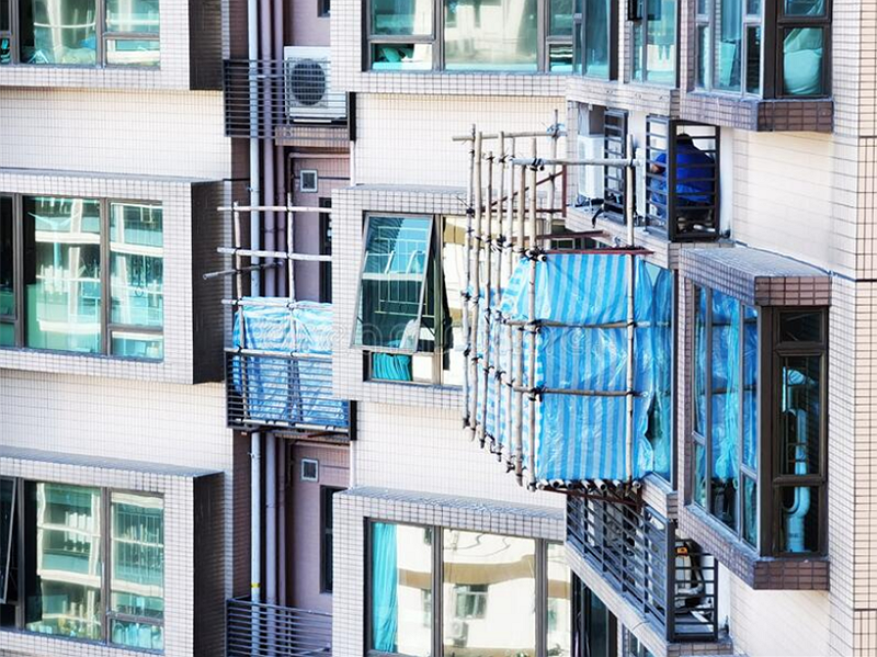 홍콩에서 자주 보이는 이 대나무 구조물은 보통 건물을 건축하거나, 리모델링, 수리할 때 설치하는 가설물로, 대나무 비계(飛階, scaffolding)라고 한다. 대나무들을 끈으로 튼튼하게 엮은 후 작업 발판을 설치해 필요한 작업을 수행한다. 홍콩에서는 이런 가설물은 대나무 죽과 사다리 봉를 합쳐 광둥어로 ‘쩍팡(竹棚)’ 또는 ‘쩍팡가(竹棚架)’라고 한다. 홍콩에서 대나무 비계를 만들기 위해 매년 7미터 길이의 대나무 막대 500만 개를 사용한다고 한다.