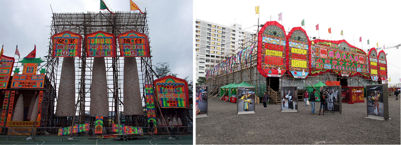 대나무 자재는 건설 현장 외에도 홍콩 지역 축제에서도 다양하게 활용된다. 음력 7월 15일 홍콩의 위란절(Yu Lan Ghost festival)이나 5월 청차우 빵축제(Cheung Chau Bun Festival)와 같은 대표적인 홍콩 지역 축제에서 대나무 자재로 임시 광동 오페라 극장나 빵탑 등을 만드는데, 축제의 또 다른 볼거리다.