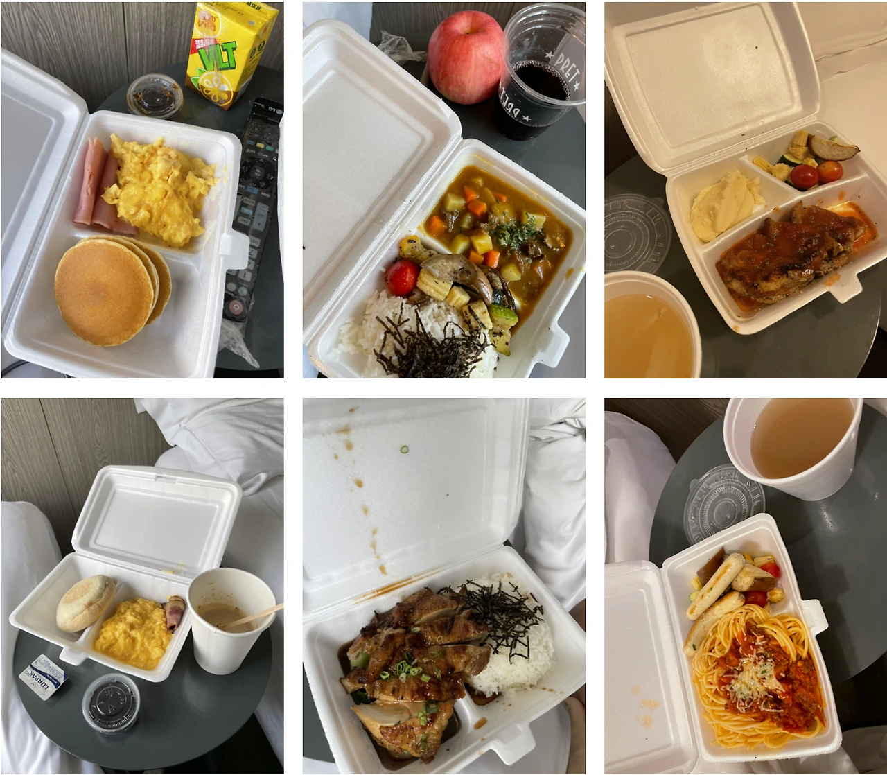 하루 3끼 식사는 사식처럼 객실 문 앞에 도착한다. 올드보이 속 최민식처럼 방 안에 갇혀있는 우리는 군만두가 아니지만, 랜덤박스처럼 매번 다른 음식이 도착한다. 오늘 점심은 뭘까, 도시락 뚜껑을 열면서 냄새로 알아맞히는 게임을 하는 지경에 이르게 된다. 점심을 먹으면서 저녁은 뭐가 나올까 그 자리에서 저녁 메뉴 맞추기 게임까지 연달아한다.