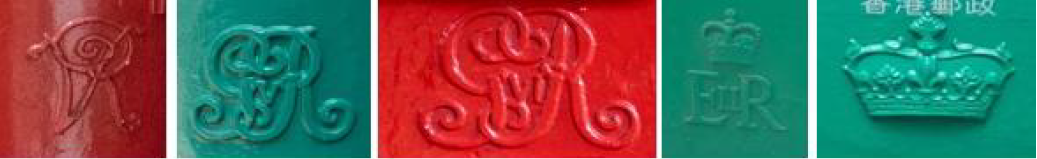 출처 : Wikipedia 'Hong Kong Post'; The Guardian 'Hong Kong to cover British insignia on postboxes to 'avoid confusion''; Hidden Hong Kong 'Hong Kong Colonial Post Boxes'; Localiiz 'Hidden Hong Kong: A history of Hong Kong’s postal service'; BBC 'Fight to preserve Hong Kong's colonial post boxes'