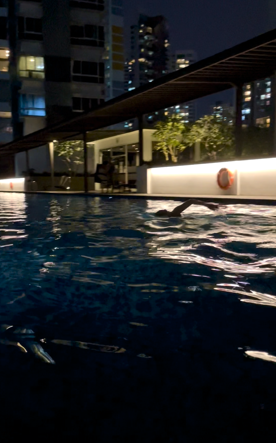싱가포르 한달살이 2주 만에 엄마는 안면을 튼 이웃사촌도 생겼다. 오랫동안 수영을 해왔던 엄마는 싱가포르에 와서 가장 좋아했던 것이 바로 콘도 내 야외 수영장이었다. 한 번 가는 법을 알려드리니, 이후에는 내가 일을 할 때, 혼자서 수영을 하고 오시곤 했다. 일주일에 3,4번 해가 세지 않은 아침 시간대에 내려가 수영을 하고 왔는데, 항상 비슷한 시간대에 수영을 하니 오며 가며 얼굴이 익는 수영 메이트가 생겼다. 어느 날은 수영을 하고 집에 온 엄마가 "오늘 어떤 중국 아저씨가 나한테 왜 배영은 안 하냐고 물어봐서, 배영을 보여주니까 엄지척을 했다"며 어깨가 으쓱해져서 나랑 조니에게 자랑을 하셨다.