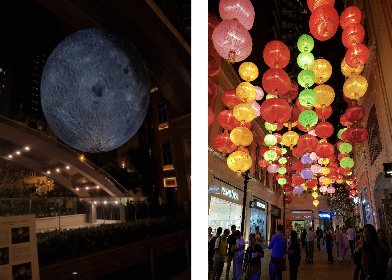침사추이, 코즈웨이베이 등 대형 쇼핑몰이나 쇼핑거리에 수많은 랜턴과 토끼, 보름달 등으로 장식을 하기 때문에 특별히 축제 현장에 가지 않더라도 충분히 중추절 분위기를 즐길 수 있다. 완차이 Lee Tung Avenue에만 가도 화려한 랜턴 장식에 연신 사진을 찍을 수 밖에 없다. 인근 공원이나 주택가에서도 다양한 모양의 랜턴을 들고 돌아다니는 아이들을 많이 볼 수 있다. 고사리같은 아이들의 손에 들린 랜턴은 어두운 밤을 밝게 비추듯 가정에 좋은 기운과 번영을 불어넣어준다.