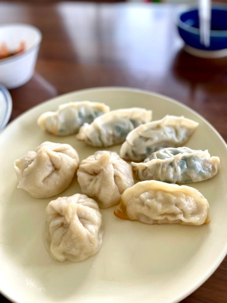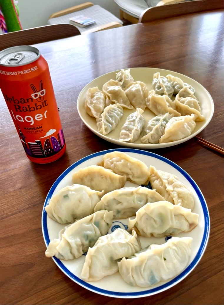 두런두런 앉아서 수다를 떨며 만두를 빚다 보면 어느 순간 만두소가 다 비워진다. 프라이팬에 구워서 먹을 만두를 따로 빼내고 나머지 만두들을 찜기에 여러 번 나눠서 찐다. 갓 쪄낸 만두에서 김이 모락모락 나는데 찜기 뚜껑을 열 때 가장 마음이 설렌다. 당장 먹을 찐만두를 그릇에 옮겨 담고, 남은 찐만두는 잘 식혀서 냉동실에 넣는다. 주의할 점은 만두를 넓은 그릇에 띄엄띄엄 놓고 얼린 후, 꽁꽁 얼려진 만두들은 봉지에 소분해야 나중에 꺼내 먹을 때 만두들이 서로 달라붙어있지 않는다. 이것도 연애 때부터 지금까지 n회차 만두를 빚으면서 조금씩 얻은 노하우다.