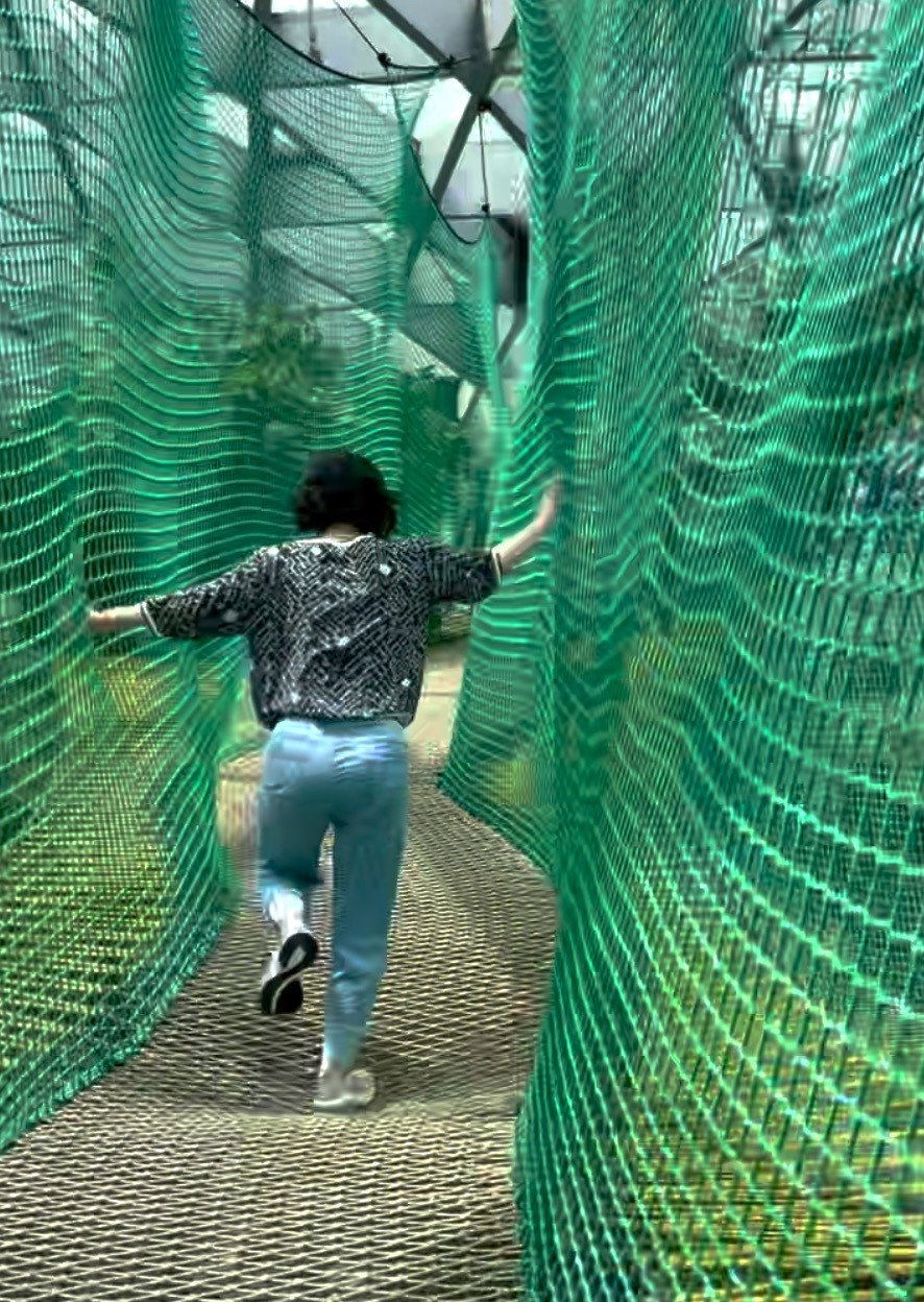 그물로 된 미끄럼틀과 공놀이를 하는 등 다양한 공간이 있는 Bouncing Net에서는 어린아이와 부모들이 곳곳에서 즐기고 있었다. 우리는 유일한 성인 둘, 심지어 엄마와 딸 조합으로 이 공간에 들어섰고, 과연 아이들이 좋아할 액티비티를 엄마도 좋아할까 의구심이 들었다. 그런데 웬걸, 여기서는 엄마가 땀을 뻘뻘 흘리시면서 즐기셨다. 어린이들과 한데 섞여 그물 미끄럼틀을 여러 번 타시고, 마치 목도리 도마뱀처럼 그물 위를 뛰어다니셨다.