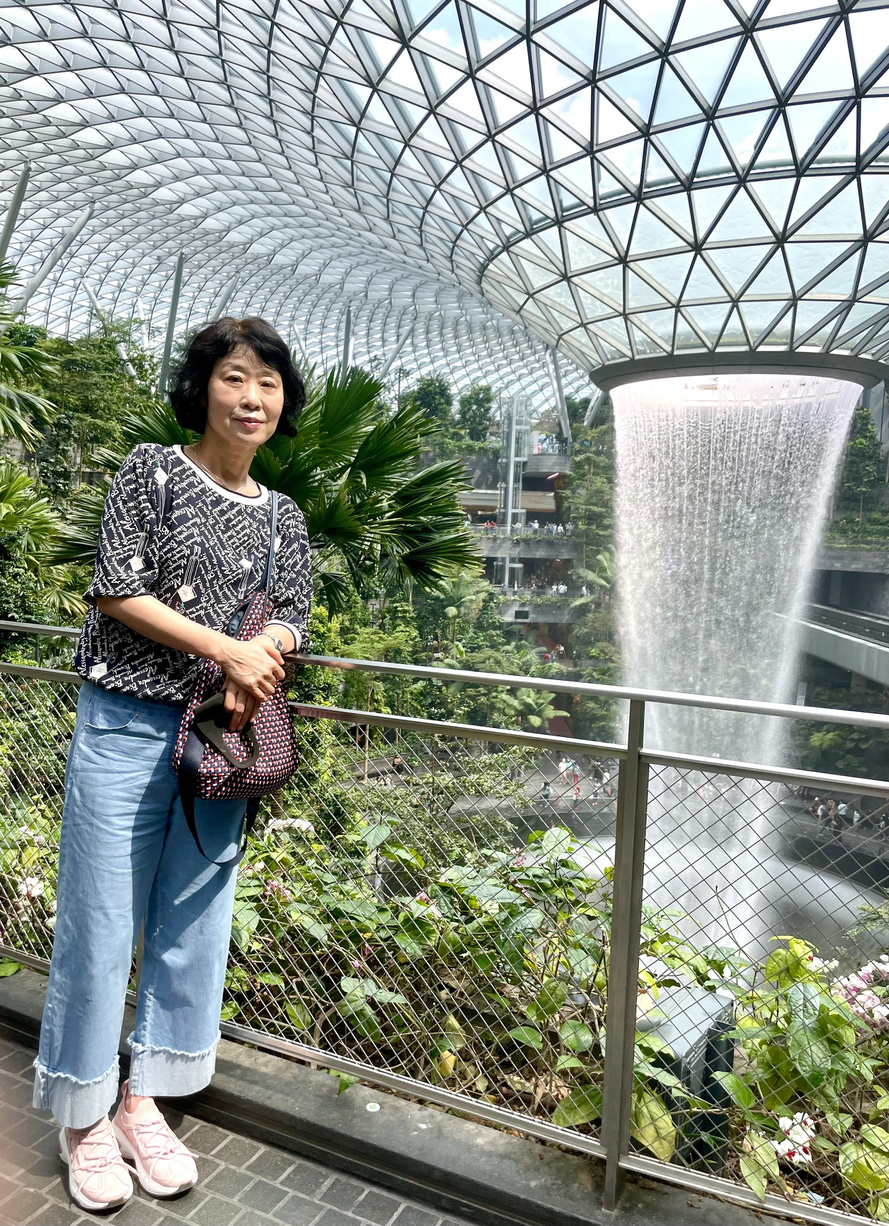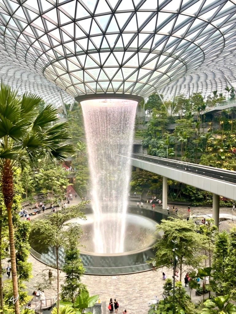 싱가포르 관광 사진에서 빠지지 않고 등장하는 곳이 바로 큰 돔 천장에서 큰 물줄기가 떨어지는 실내 인공 폭포다. 주얼 건물과 실내 디자인은 마치 미래세계 속 돔 도시를 연상케 한다. 창이공항과 붙어있어 많은 여행객들에게는 잠깐의 휴식처가 되어주는 공간이지만, 싱가포르 주민들에게는 쇼핑, 먹거리, 액티비티, 숙박 등 모든 것을 해결할 수 있는 복합 쇼핑몰이다.