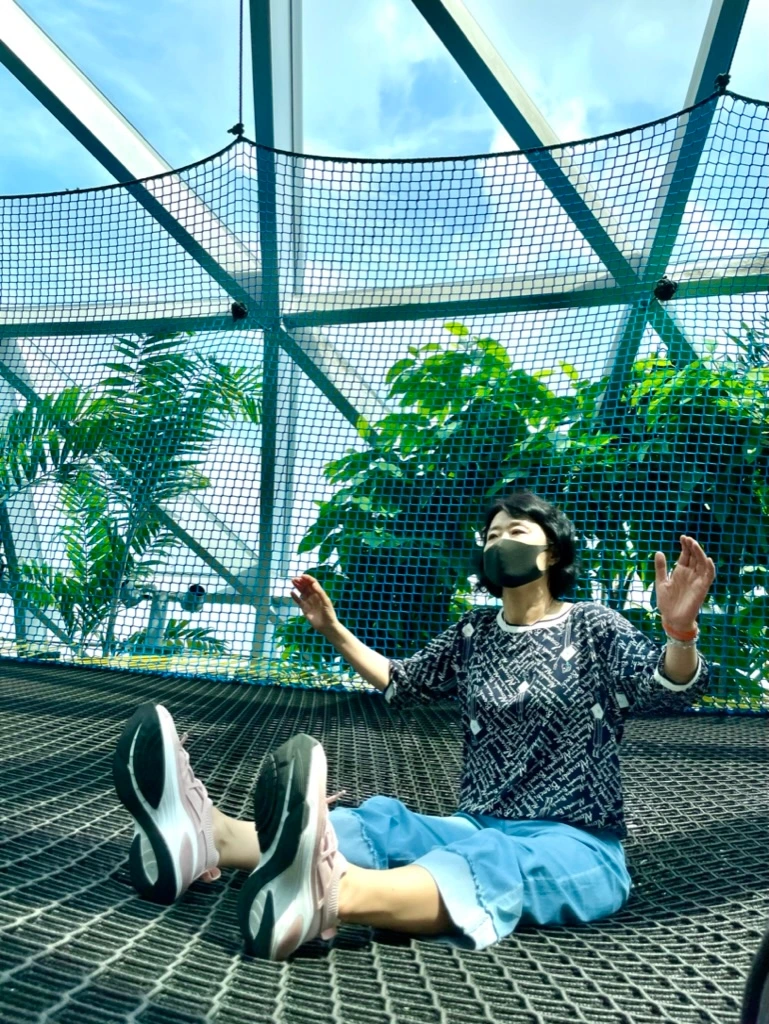 나는 미끄럼틀 출구 근처에 앉았다. 엄마는 미끄럼틀을 타려고 몇 번을 오르락내리락하셨다. 어느새 엄마 이마에 땀이 송골송골 맺혔다. "엄마 재밌어?"하고 물었다. 엄마는 "엄마가 어릴 땐, 이런 게 없어서 처음 타보는데 생각보다 너무 재밌네!"하고 싱긋 웃으셨다. 싱가포르 구경을 시켜주려는 딸의 노력과 마음을 알고 일부러 더 재밌게 즐기시는 모습을 보여주시려는 것인지, 실제로 모든 것이 처음이라 재밌어하시는 건지는 알 수 없으나, 재밌어하는 엄마의 모습을 보고 있노라니 알게 모르게 뿌듯하고 만족스러웠다.