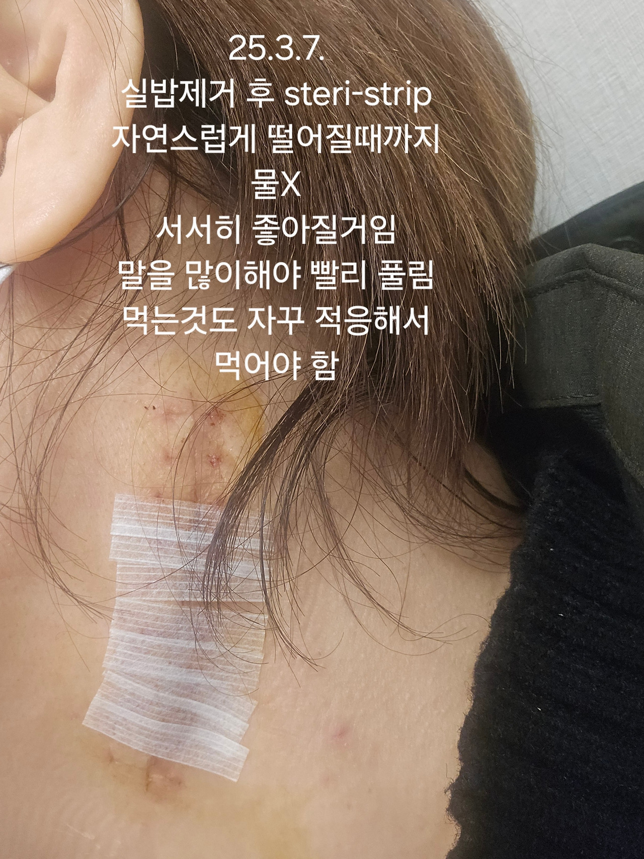 지금은 steri-strip을 붙여놓은 상태이고요.