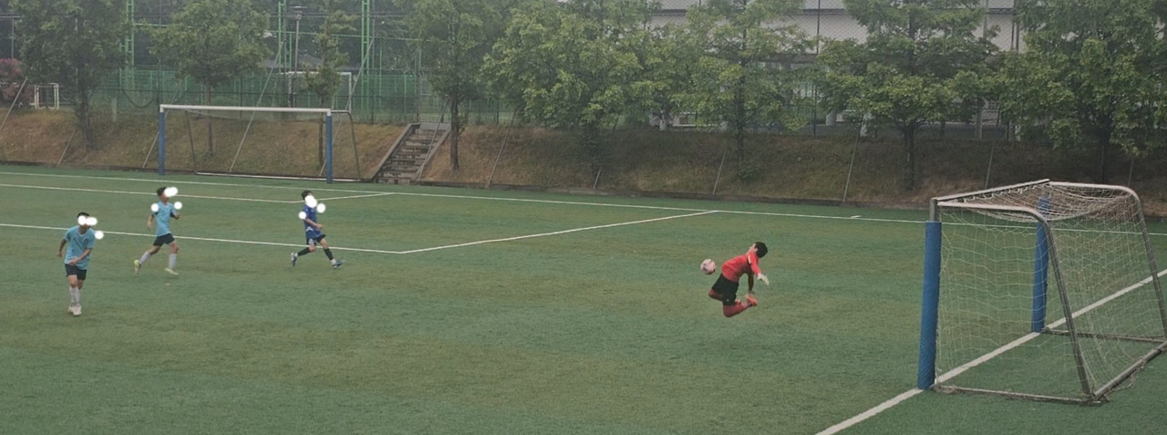 아무래도 형아들이다 보니 슛이 친구들보다 빠르고 강했는데 아이가 허리를 활처럼 꺾으며 공을 막고 떨어졌다.