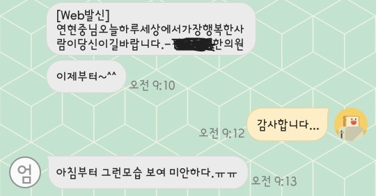 그렇게 한참을 울고 나니, 진짜 눈물이 멈추는 때가 왔다. 마음이 후련해졌고, 다시 새로운 마음으로 행복한 생일을 시작할 수 있을 것 같았다. 마침 어머니께서도 미안하다는 문자가 왔다.