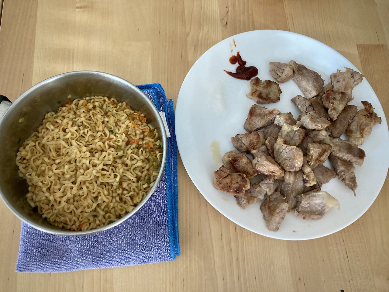 샤워를 마치고 장을 보러 마트에 갔다. 오늘 메뉴는 삼겹살. 스페인어로 삼겹살이 뭔지는 모르지만, 30년 넘게 먹어온 친구니까 보면 알 수 있다. 스페인 라면도 하나 샀다. 집에 와서 삼겹살을 굽고 라면을 끓였다. 스페인 라면의 면만 꺼내서 한국에서 사간 라면 스프를 넣었다. 여기는 이미 우리 집이었다.