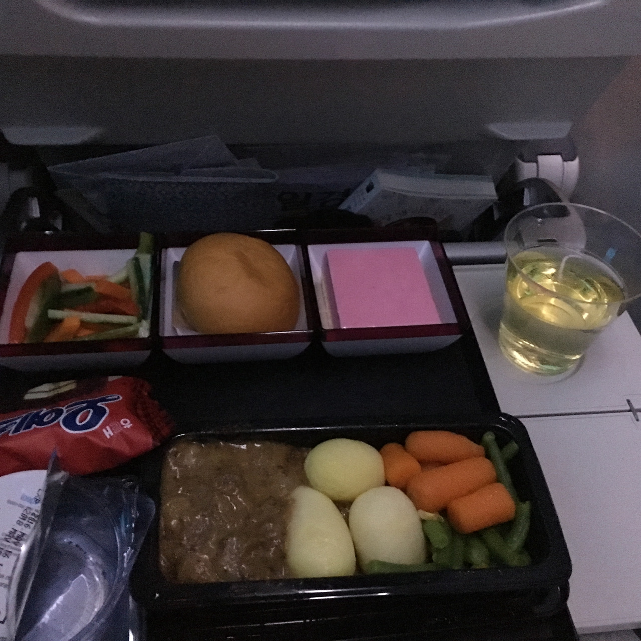 이건 기내 사육의 시작이었다. 아직 입안에 남은 소고기를 씹어 삼키며 수분크림을 덧 발라 보지면 소용없었다. 밥 먹고 나니 화장실도 가고 싶고, 비켜달라고 말하기엔 너무 좁고 미안하고 뭐 그런 이상한 착한 사람 코스프레를 하면서 그냥 참고 잤다.