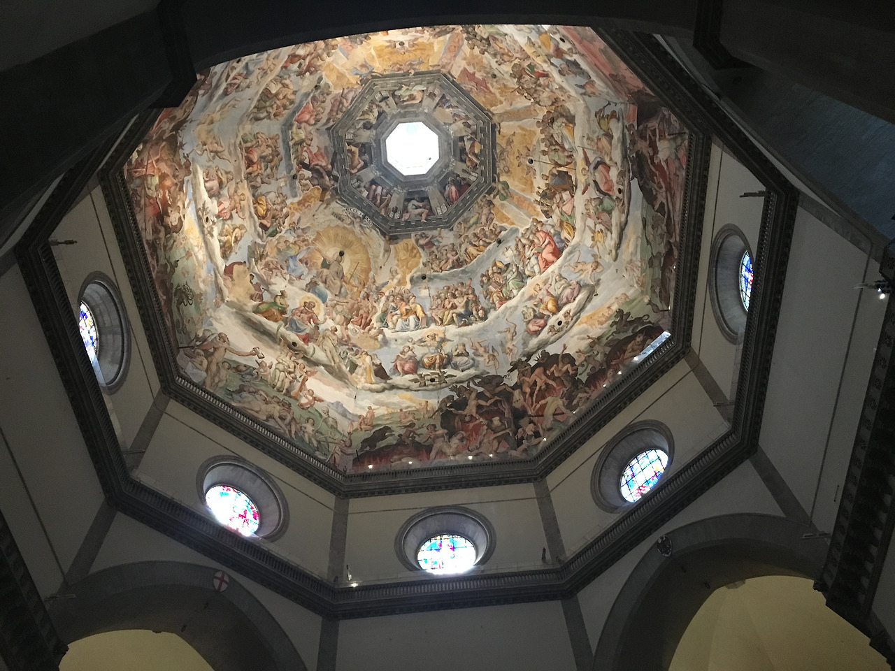 들어서자마자 천장에 보이는 프레스토화는 모두를 침묵하게 만든다. 두오모로 올라가는 길은 성인 남자 1명이 지나갈 수 있을 정도의 통로의 가파른 계단이었다. 위에서 내려오면 벽에 최대한 몸을 밀착해서 통로를 확보해줘야 하는 상황. 이러니 줄이 길 수밖에 없다는 생각이 들었다. 가파른 계단은 총 463개이다. 힘들어도 쉬지를 못한다. 내가 멈추면 뒷사람이 멈춰야 하기 때문이다. 뙤약볕에 기다리는 사람을 위해서라도 쉼 없이 올랐다. 어둡고 가파른 통로 끝 빛이 보기가 시작했다. 드디어 내가. 아니 우리가 두오모에 올랐다.