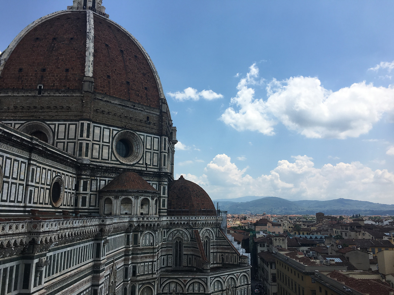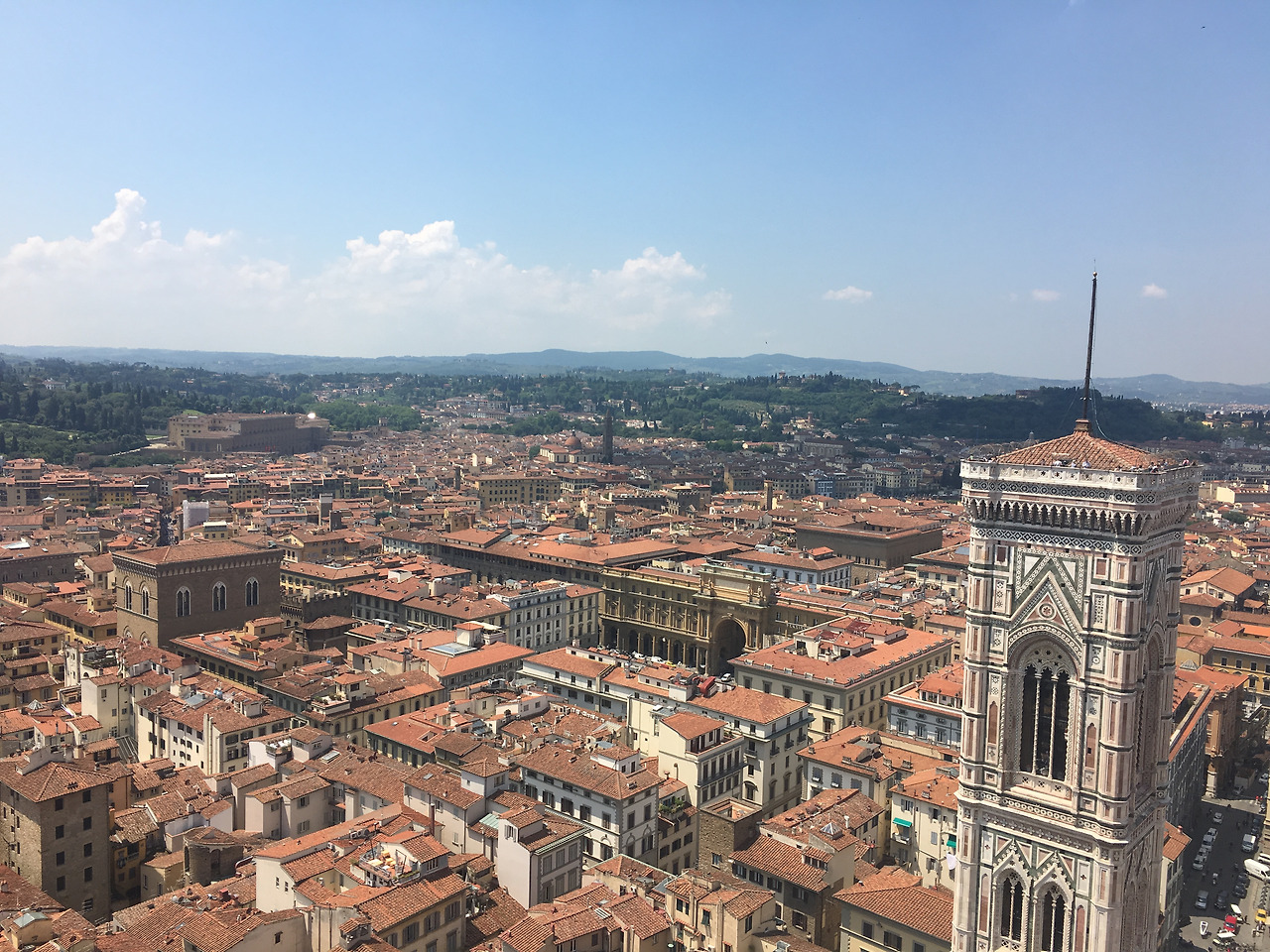 서둘러 내려와, 반대편 종탑으로 발길을 옮겼다. 종탑에 올라가면 두오모를 볼 수 있기 때문이다. 조토의 종탑은 두오모보다 계단이 넓어 올라가기 편하다. 중간중간 쉴 수 있는 곳이 있다. 힘든 것 같지만 나이 많으신 분들도 많이 오신다. 그렇게 모르는 여행객들과 배려하며 한 칸 한 칸 오르다 보면, 어느새 종탑 제일 높은 곳에 도착한다. 두오모와 함께 피렌체의 전경을 다시 한번 느낄 수 있다.