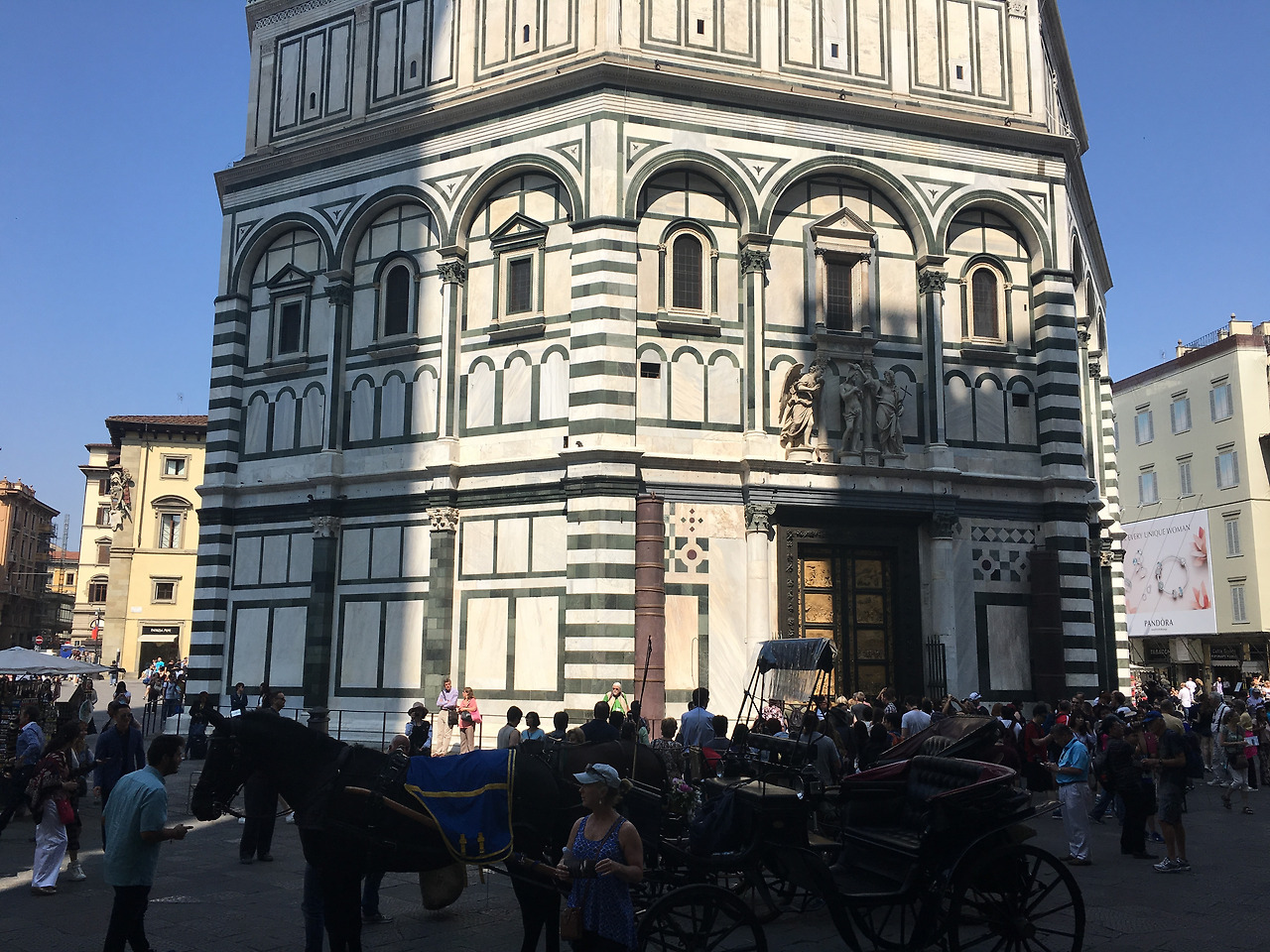 '산타 마리아 델 피오레 대성당'으로 꽃의 성모 교회를 뜻한다. 이탈리아 도시 대부분은 시에서 운영하는 지는 모르지만 패스권을 판매하고 있다. 패스권만 있으면 줄을 서지 않고, 이곳저곳을 모두 볼 수 있다고 한다. 패스권이 없는 우리는 주야장천 서서 기다렸다. 대성당을 둘러싼 줄은 줄어들 기미가 안보였다. 앞에 입구까지 몇 번이나 왔다 갔다 하며 줄이 줄어들기를 기다린 지 50여분째. 드디어 우리 차례가 왔다.