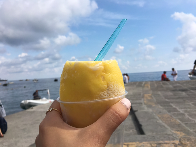 포지타노는 레몬이 유명해 각종 레몬 관련 상품들이 있었다. 제일 유명한 레몬 셔벗. 비싸긴 하지만 맛있고, 상큼하다. 상상하는 그 맛. 그대로이지만 또 먹고 싶은 그런 맛이다. 이탈리아는 자릿세를 받기 때문에, 보통의 사람들은 사서 해변가에 앉아서 먹는다. 오히려 그게 더 낭만적이다.