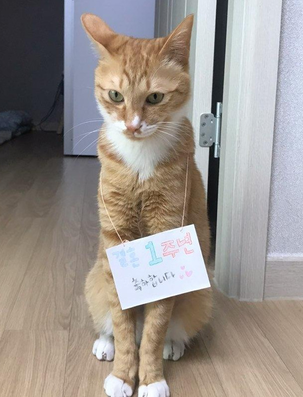 메시지는 터키에 있는 우리 부부를 대신해 신혼집에 머물며 고양이를 보살펴주던 동생 소라가 보낸 것이었다. " 언니와 오빠의 결혼기념일을 축하합니다~ " 한껏 들뜬 목소리로 우리를 축하하는 영상에는 무슨 영문인지도 모른 채 기념 팻말을 목에 건 우리 집 고양이 두 마리가 담겨있었다.
